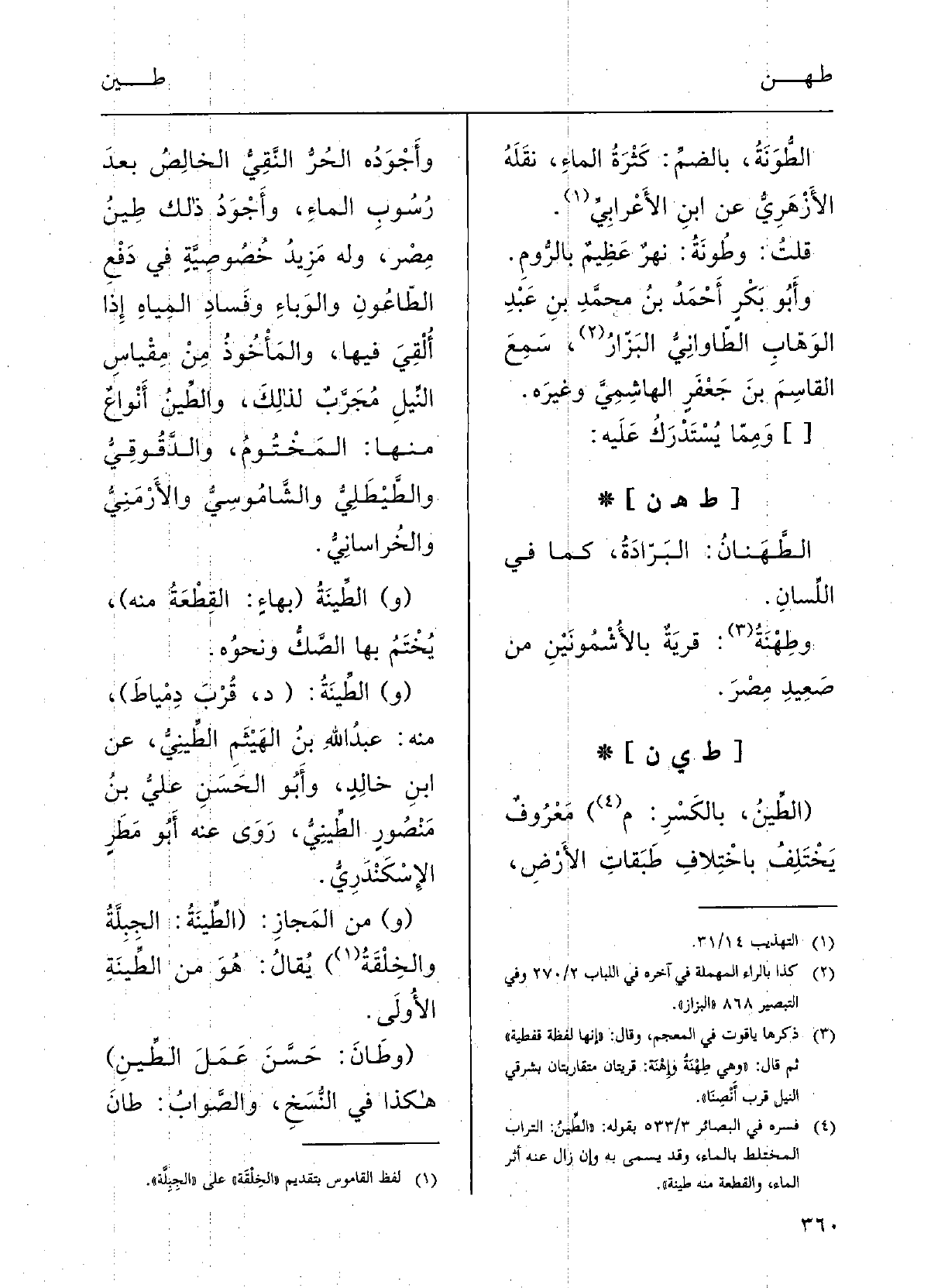( {وطَانَ: حَسَّنَ عَمَلَ} الطِّينِ) ، هَكَذَا فِي النُّسخِ والصَّوابُ! طَانَ