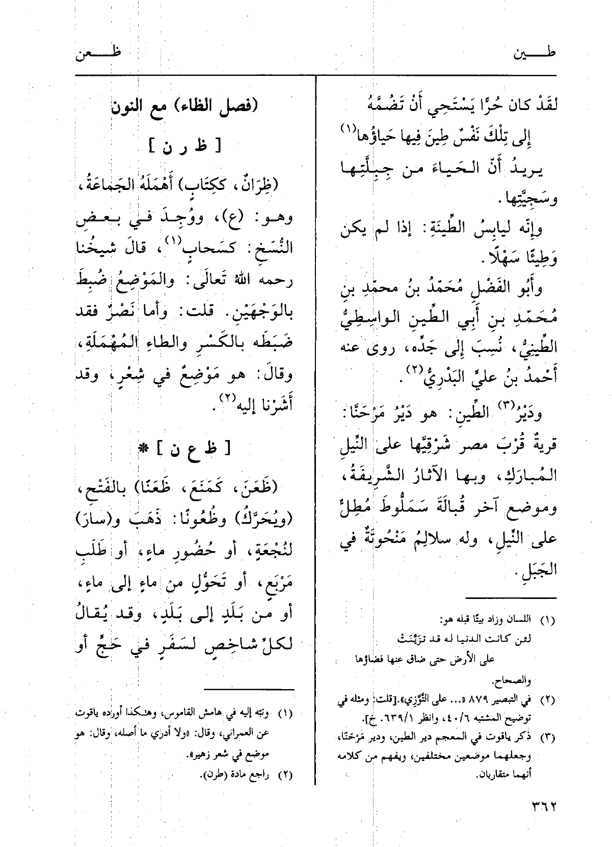 قلْتُ: وأَمَّا نَصْر فقد ضَبَطَه بالكسْرِ والطاءِ المُهْمَلَة، وقالَ: هُوَ مَوْضِغٌ فِي شِعْرٍ، وَقد أشَرْنا إِلَيْهِ.