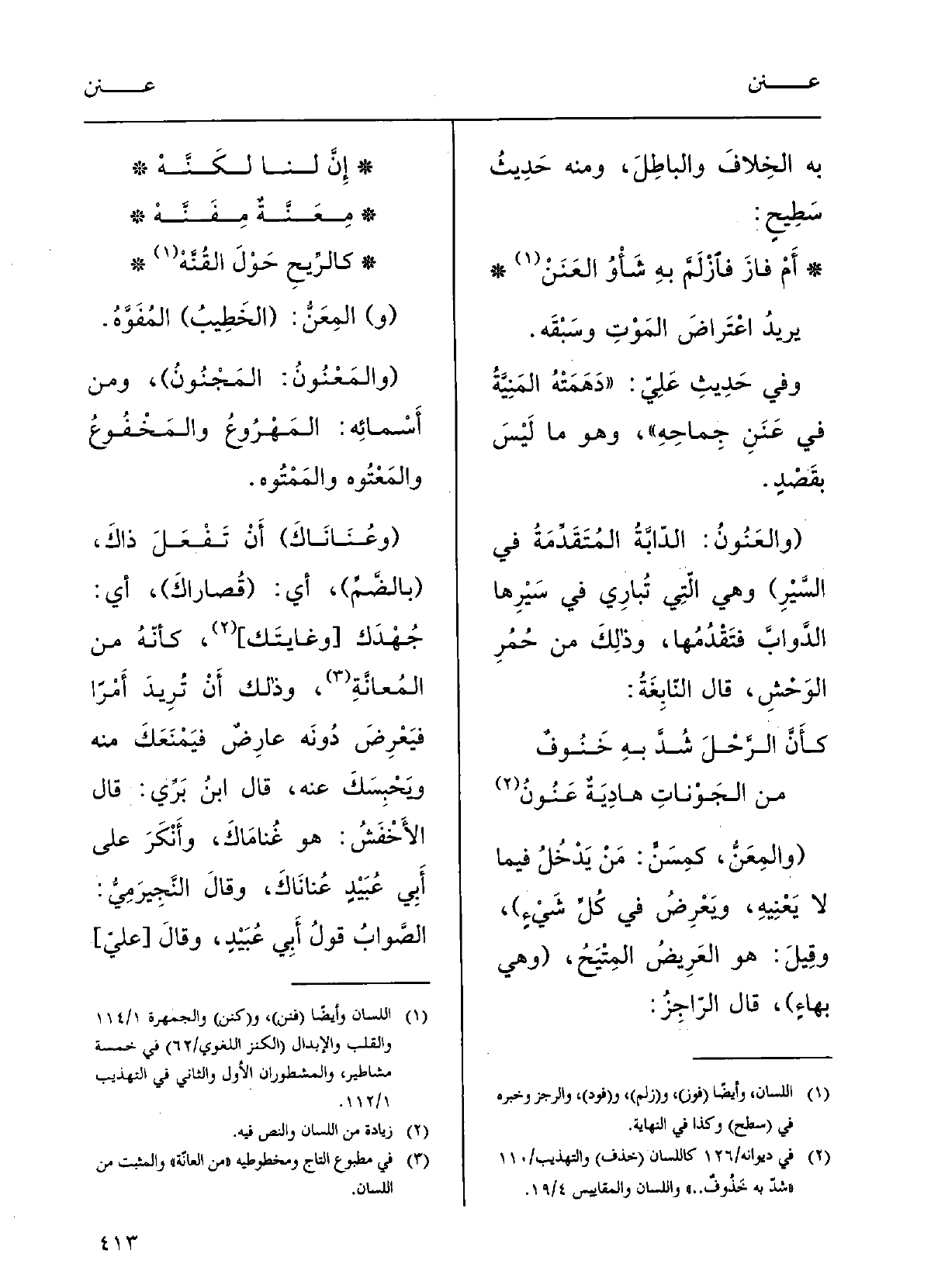 إنَّ لنا لَكَنَّه {مِعَنَّةٌ مِفَنَّه كالريحِ حول القُنَّه (و) } المِعَنُّ: (الخَطِيبُ) المفوَّهُ.