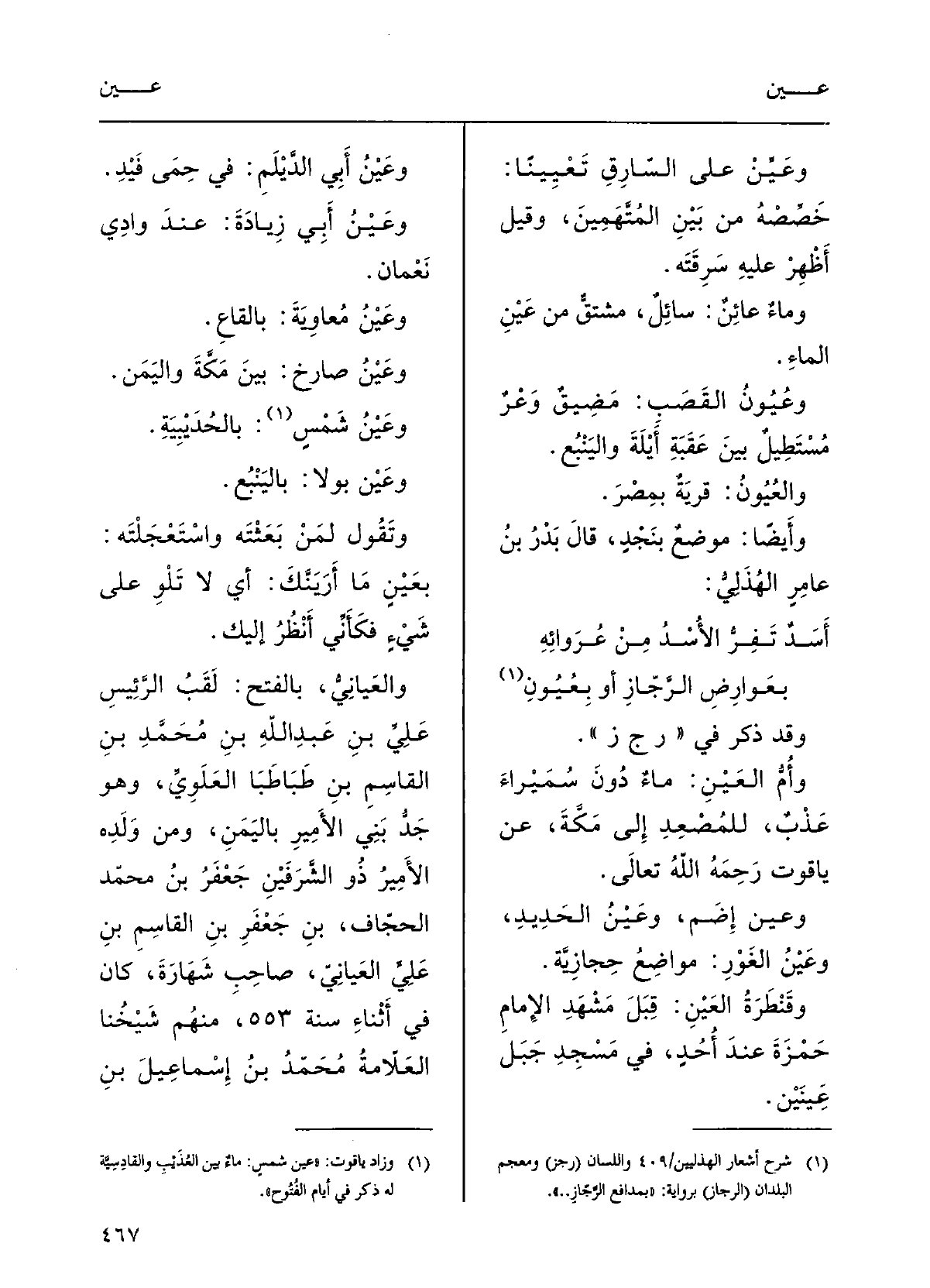 وقنْطَرَةُ العَيْنِ: قبْلَ مَشْهَدِ الإِمَام حَمْزَةَ عنْدَ أحد فِي مَسْجِد جبل} عينين.