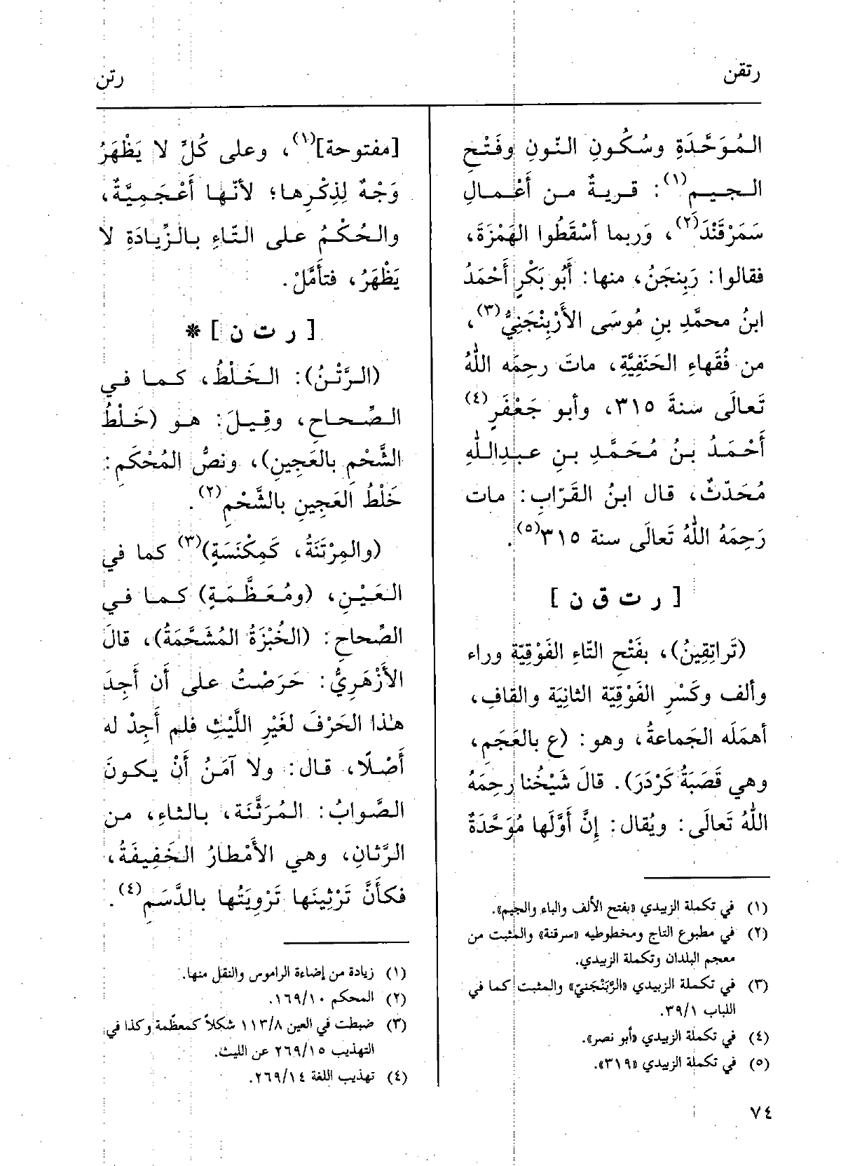 :) (تَراتِقِينُ) : بفتْحِ التَّاءِ الفَوْقيَّة ورَاء وأَلِف وكسْرِ الفَوْقيَّة الثَّانِيَة والقافِ: