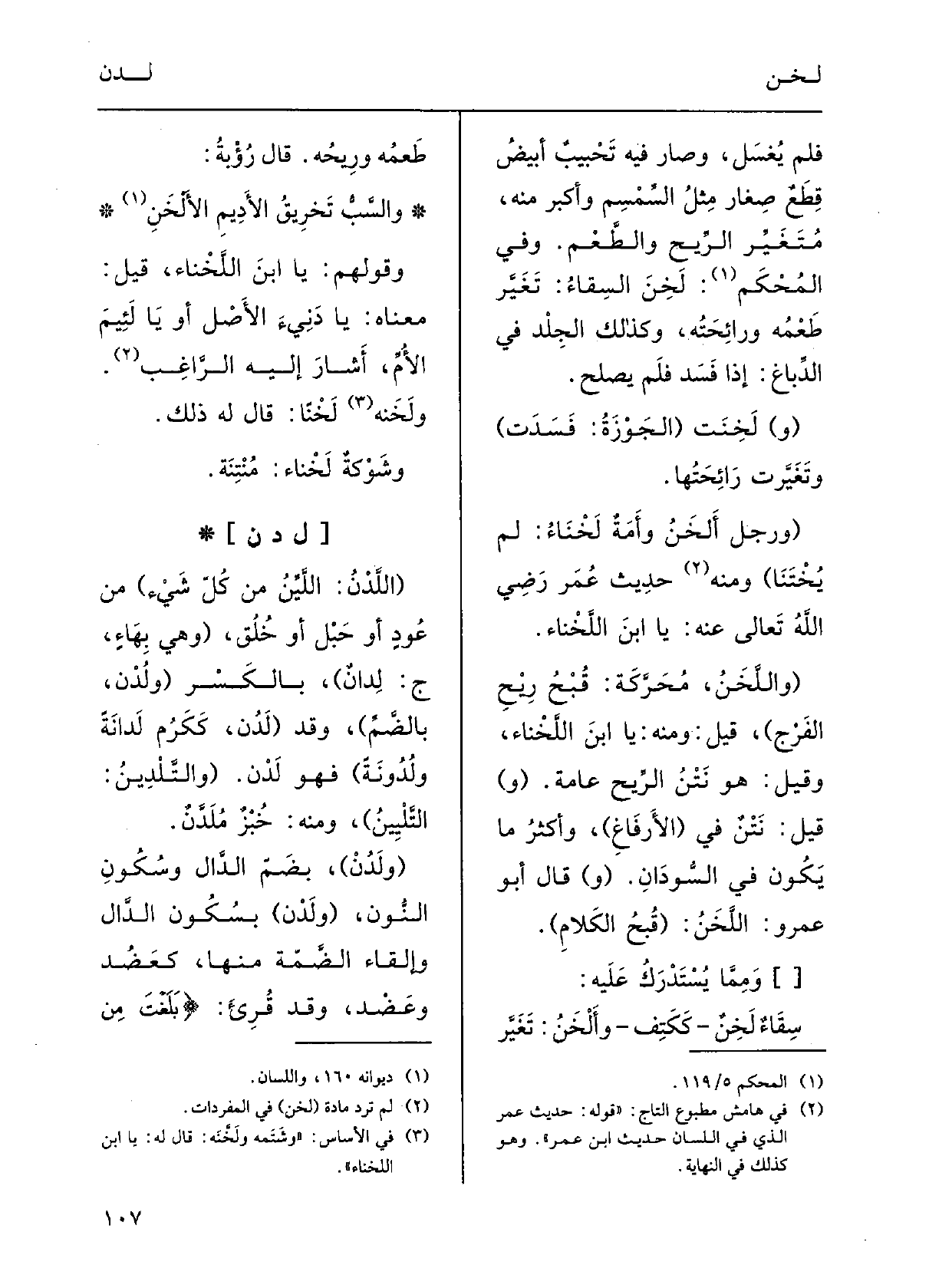(و) قالَ أَبو عَمْرٍ و: اللّخَنُ (قُبْحُ الكلامِ) .