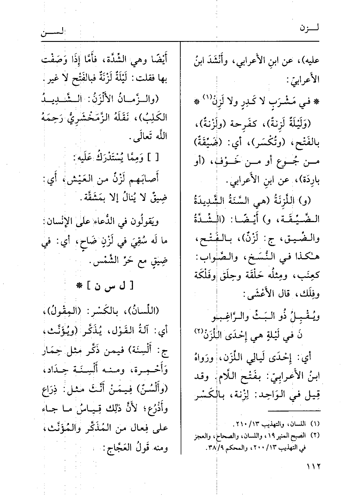 ويُقْبِلُ ذُو البَثِّ والرَّاغِبونَ فِي لَيْلةٍ هِيَ إحْدَى اللَّزَنْأَي إحْدَى لَيالِي اللِّزَنِ؛ ورَوَاهُ ابنُ الأَعْرابيِّ، بفتْحِ اللامِ، وَقد قيلَ فِي الواحِدِ لَزْنَة بالكسْرِ أَيْضاً، وَهِي الشِّدَّةُ، فأَمَّا إِذا وصَفْت بهَا فقُلْت: لَيْلَةٌ لَزْنَةٌ فبالفتْحِ لَا غَيْرِ.