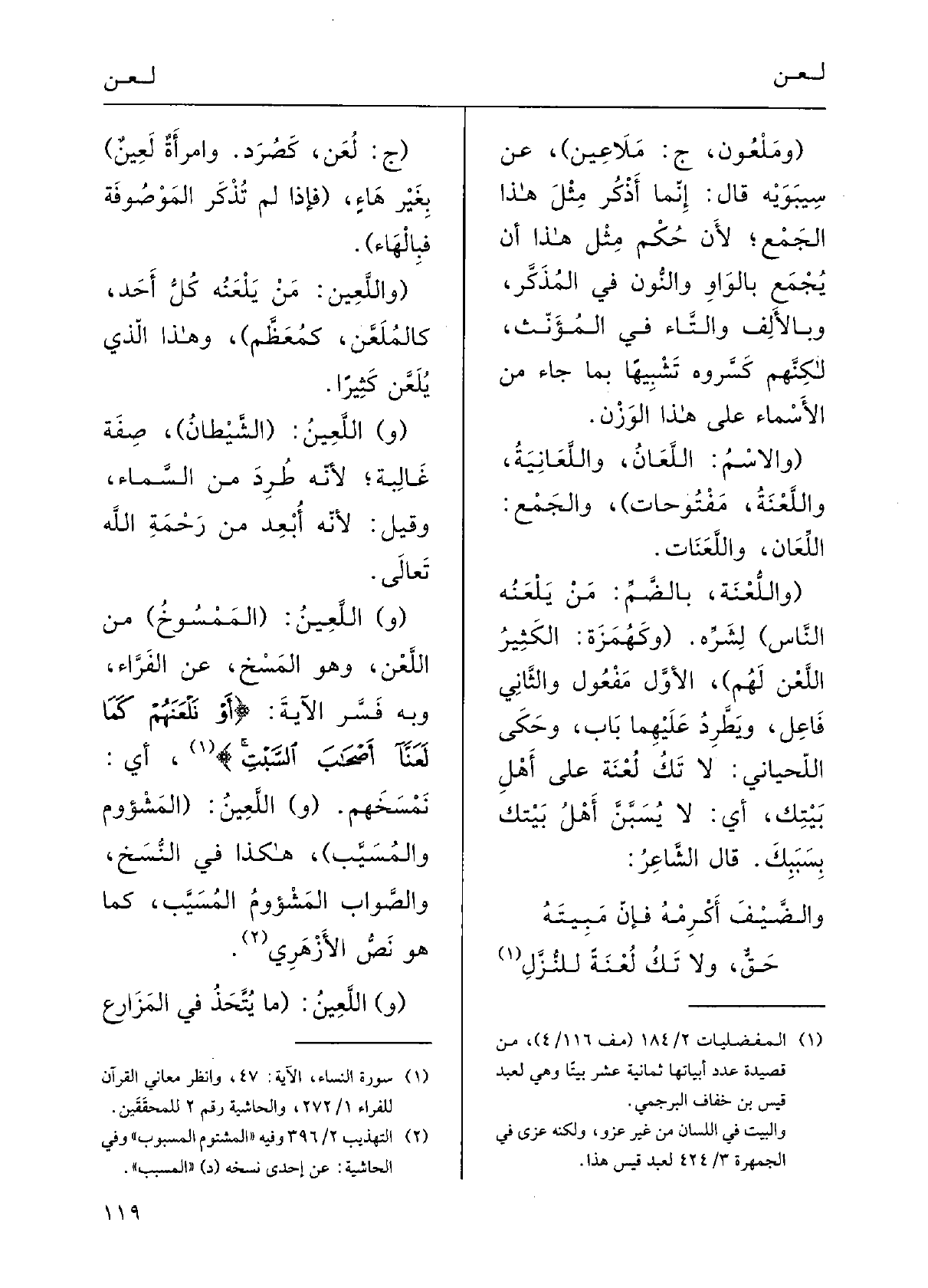والضَّيْفَ أَكْرِمْه فإنَّ مَبِيتَهحَقٌّ وَلَا تَكُ لُعْنَةً للنُّزَّلِ (ج لُعَنٌ، كصُرَدٍ.