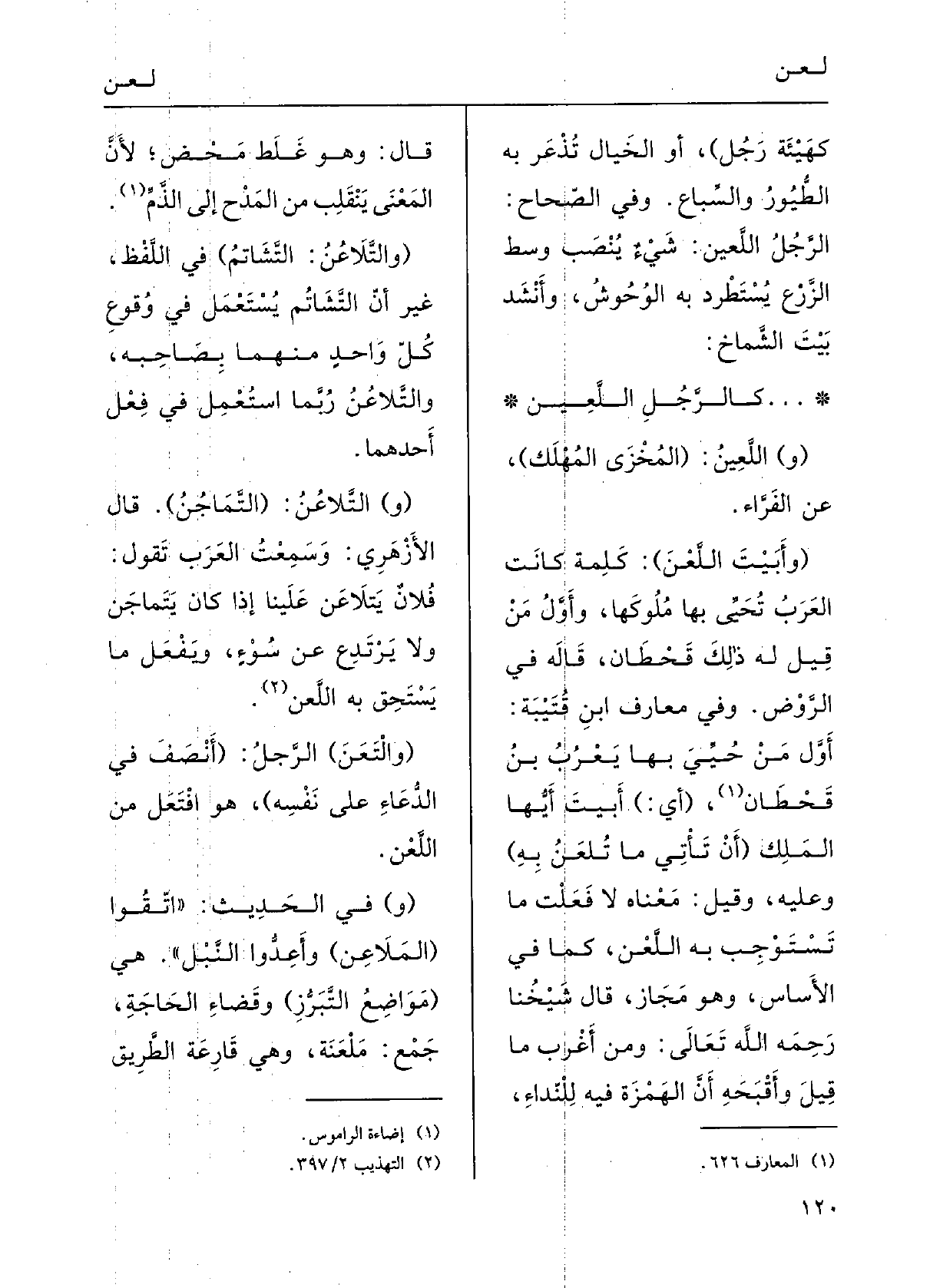(قالَ الأزْهرِيُّ: وسَمِعْتُ العَرَبَ تقولُ فلانٌ يَتلاعَنُ علينا إِذا كَانَ يَتَماجَنُ وَلَا يَرْتَدِعُ عَن سَوْءٍ ويَفْعَلُ مَا يستحِقُّ بِهِ اللَّعْنَ.