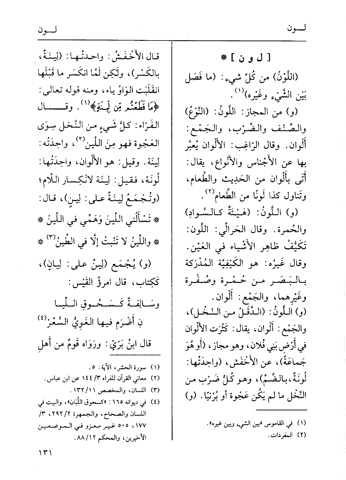 : ( {اللَّوْنُ) من كلِّ شيءٍ: (مَا فَصَلَ بينَ الشَّيءَ وغيرِه.