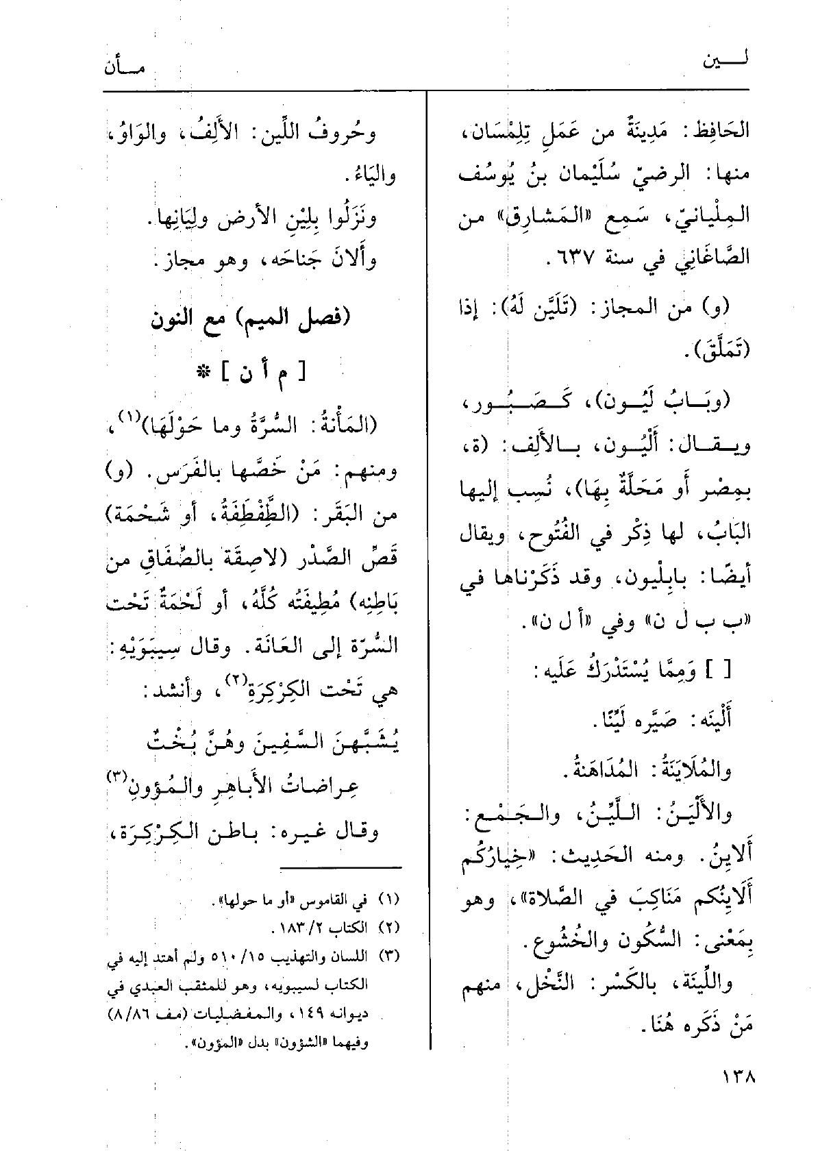 : (} المَأْنَةُ: السُّرَّةُ وَمَا حَوْلَها) ، وَمِنْهُم مَنْ خَصَّها بالفَرَسِ؛ (و) من البَقَرِ: (الطَّفْطَفَةُ أَو شَحْمَةُ) قَصِّ الصَّدْرِ (لاصِقَةٌ بالصِّفاقِ من باطِنِهِ) مُطِيفَتُه كُلَّه، أَو لَحمةٌ تحْتَ السُّرَّةِ إِلَى العانَةِ.