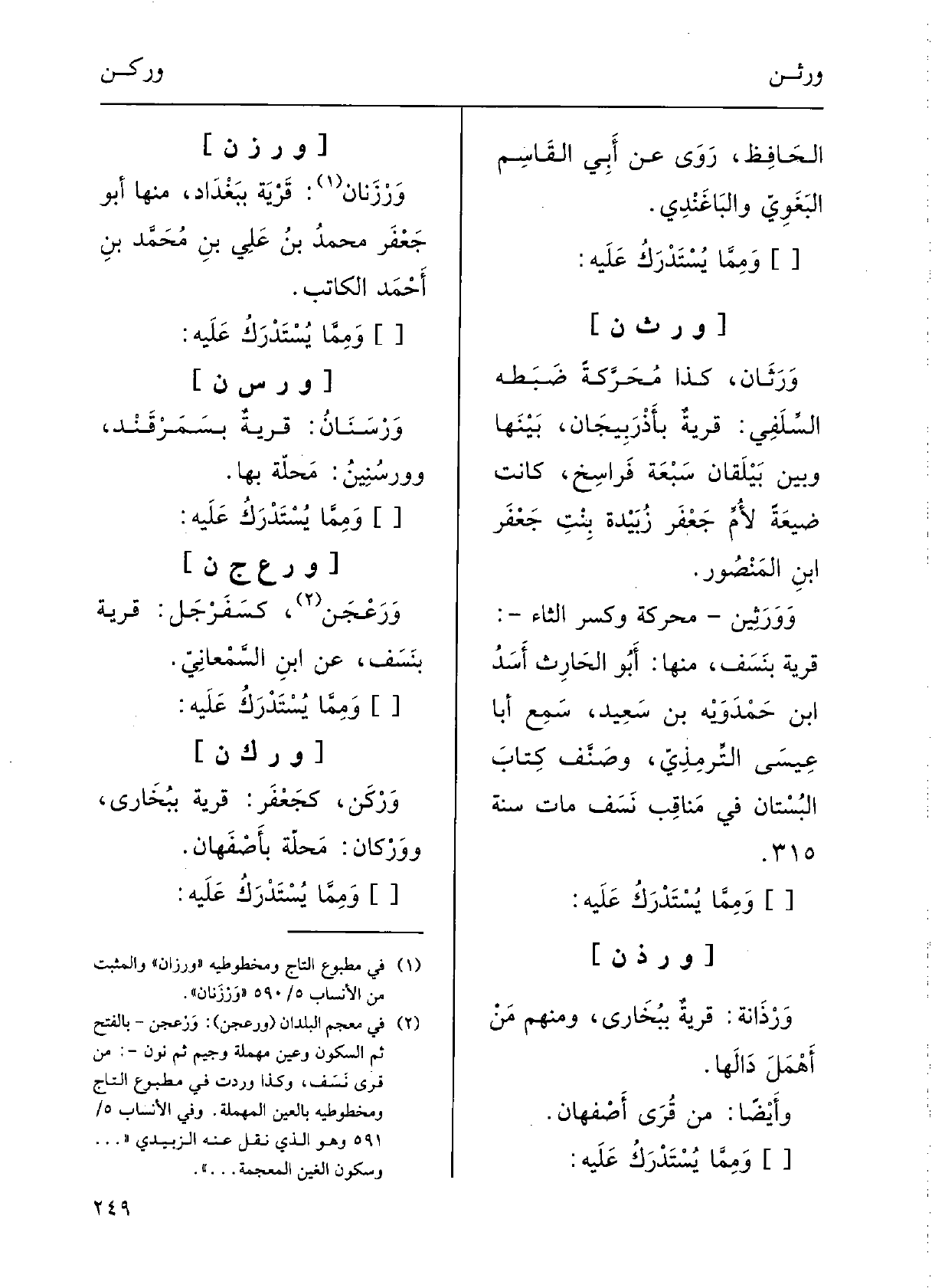 :) {وَرْسنَانُ: قرْيةٌ بسَمَرْقَنْد؛} وورسُنِينُ: محلَّةٌ بهَا.