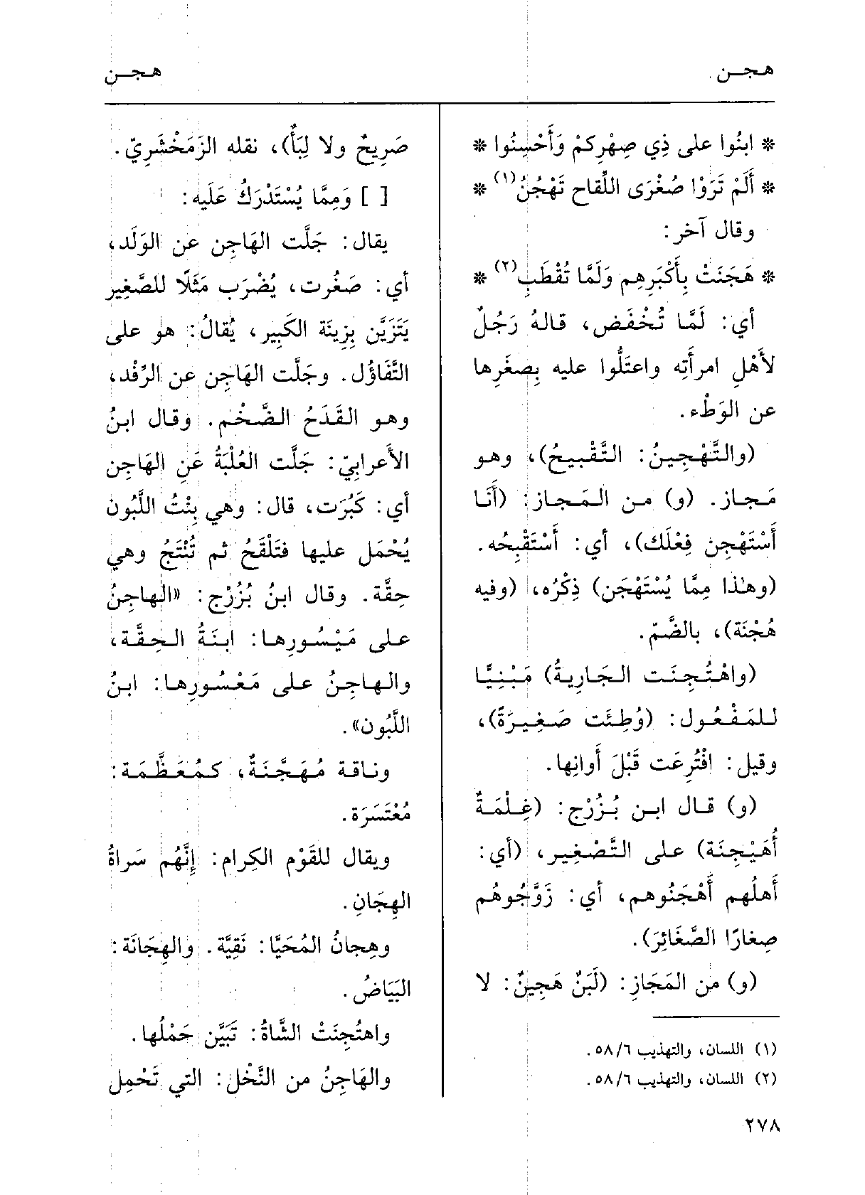 ابْنُوا على ذِي صِهْركم وأَحْسِنُواأَلم تَرَوْا صُغْرَى اللِّقاحِ تَهْجُنُ؟ وقالَ آخَرُ: