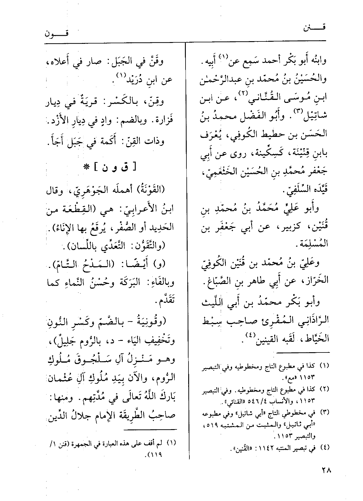 وأَبو بَكْرٍ محمدُ بنُ أَبي الليْثِ الرَّاذَانيُّ المُقْرىءُ صاحِبُ سبط الخيَّاط، لَقَبُه} القينِين.