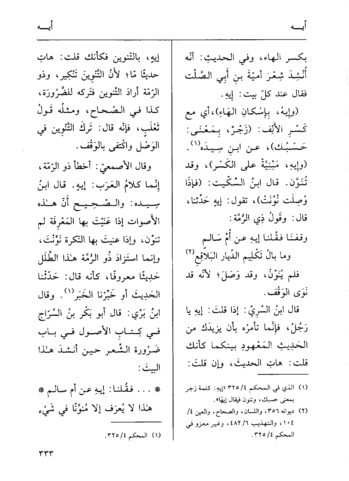 وقالَ الأصْمعيُّ: أَخْطَأَ ذُو الرُّمَّة إنَّما كَلامُ العَرَبِ إيهٍ.