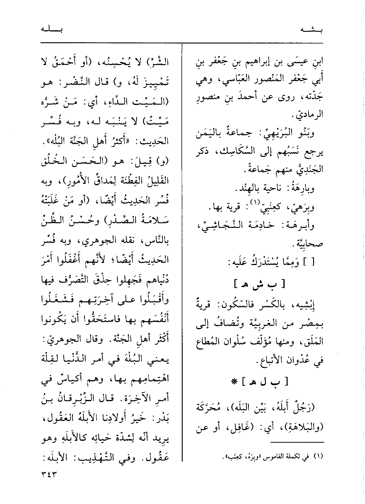 وبارهةُ: ناحِيَةٌ بالهِنْدِ؛ وبِرَهِيٌّ، كعِنَبِيَ: قَرْيةٌ بهَا.