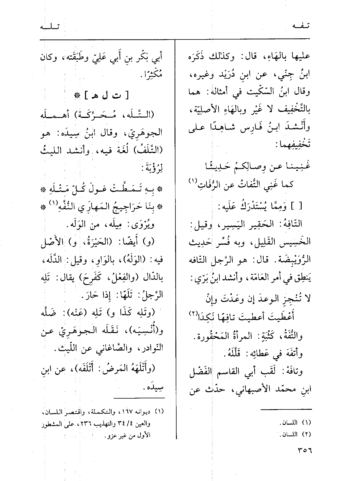 : (التَّلَهُ، محرّكةً) :) أَهْمَلَهُ الجَوْهرِيُّ.