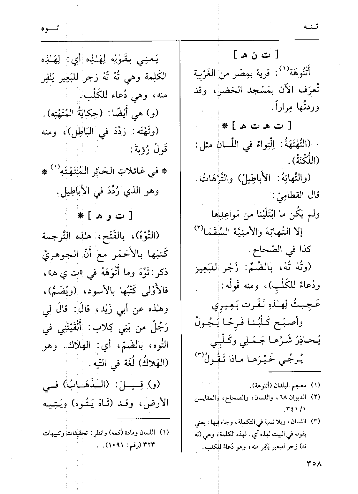 هَذِه التّرْجَمَةُ كَتَبها بالأحْمرِ مَعَ أَنَّ الجوْهرِيَّ ذَكَرَ {تَوَهَ، وَمَا} أَتْوَهَهُ فِي (ت ي هـ) ، فالأَوْلى كتبهَا بالأَسْودِ.