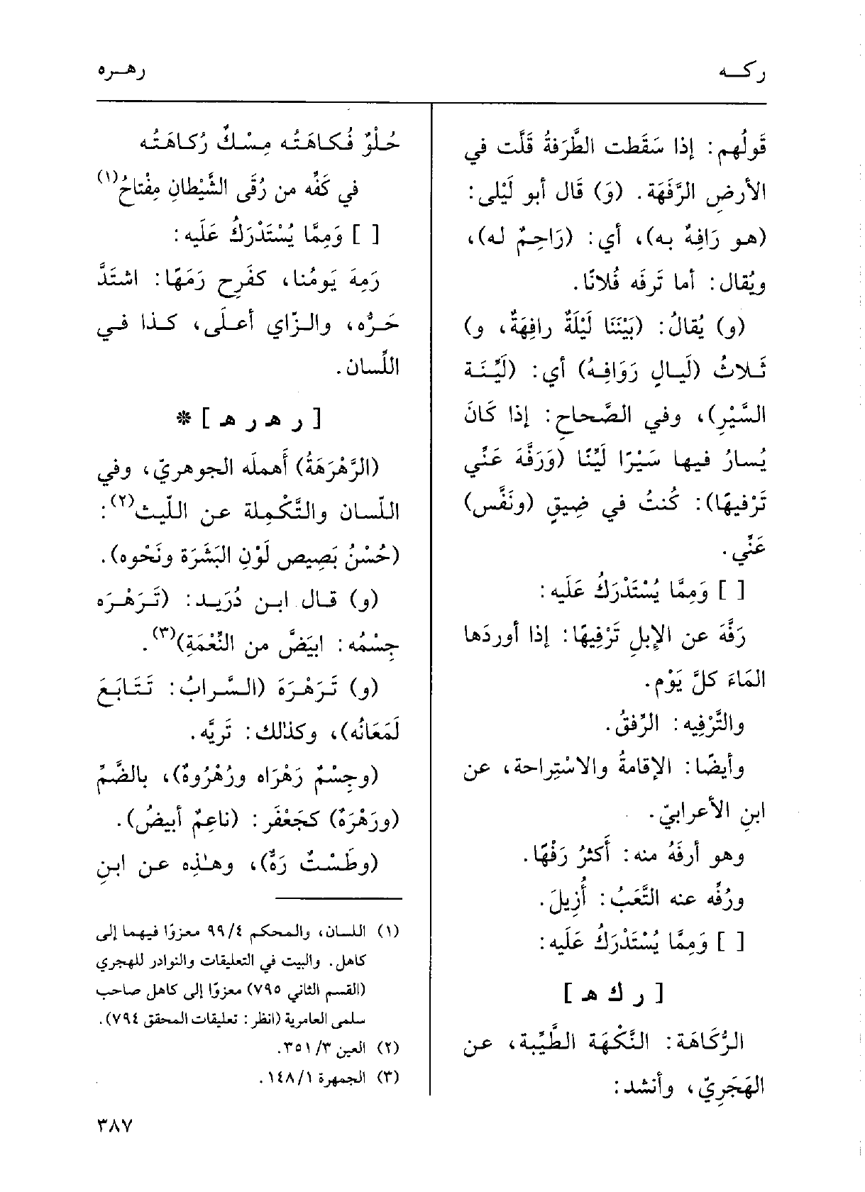:) الرُّكاهَةُ: النَّكْهَةُ الطيِّبَةُ، عَن الهَجَريِّ؛ وأَنْشَدَ:
