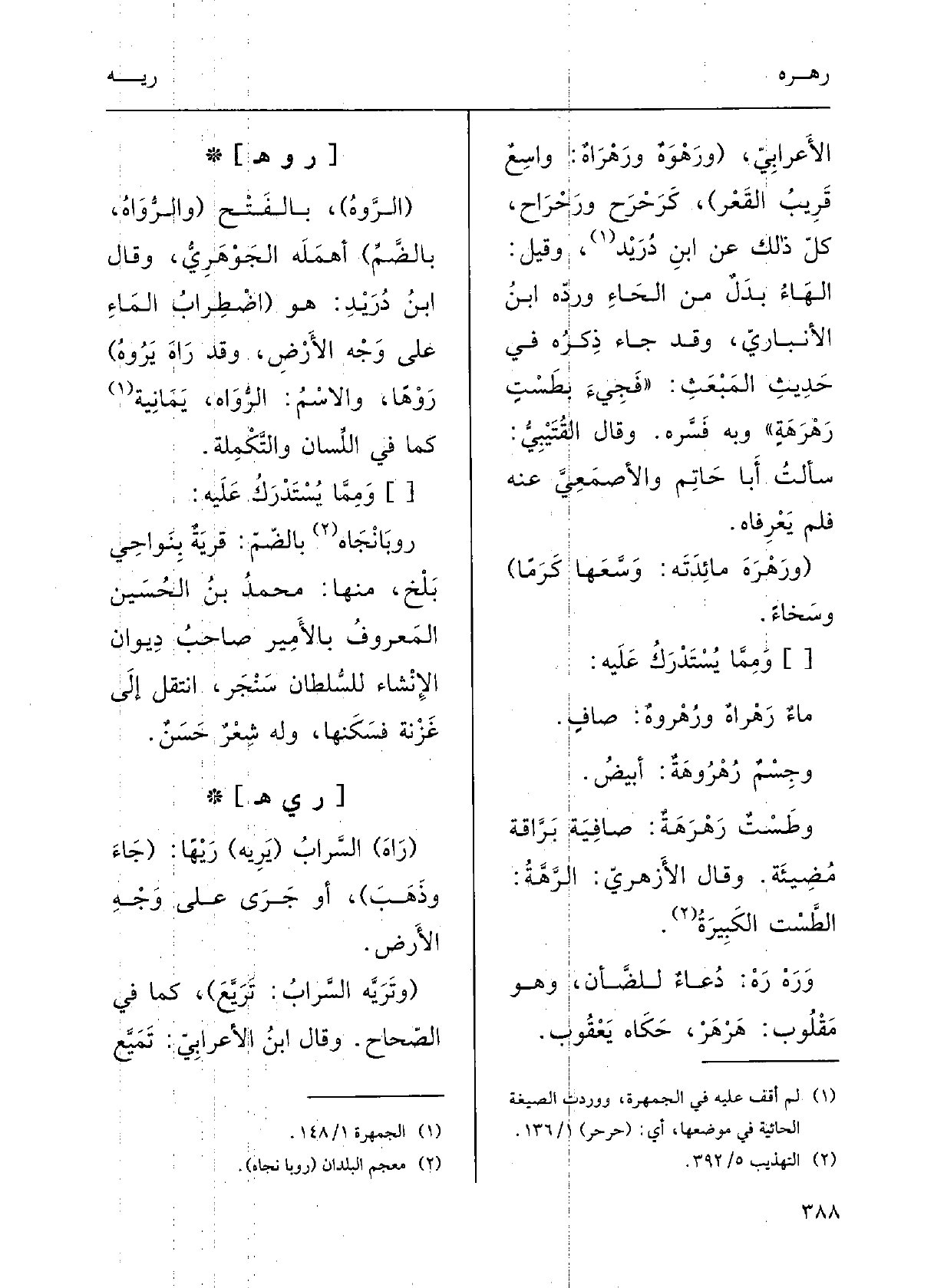 الأَعْرابيِّ، (ورَهْرَهٌ {ورَهْراهٌ: واسِعٌ قرِيبُ القَعْرِ) ، كرَحْرَحٍ ورَحْراحٍ، كلُّ ذلِكَ عَن ابنِ دُرَيْدٍ وقيلَ: الهاءُ بدلٌ مِن الحاءِ وردّه ابْن الأنْبارِي.