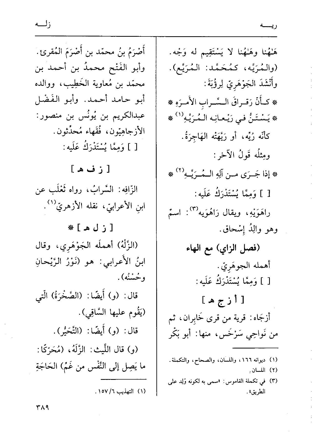 (فصل الزَّاي) مَعَ الْهَاء)