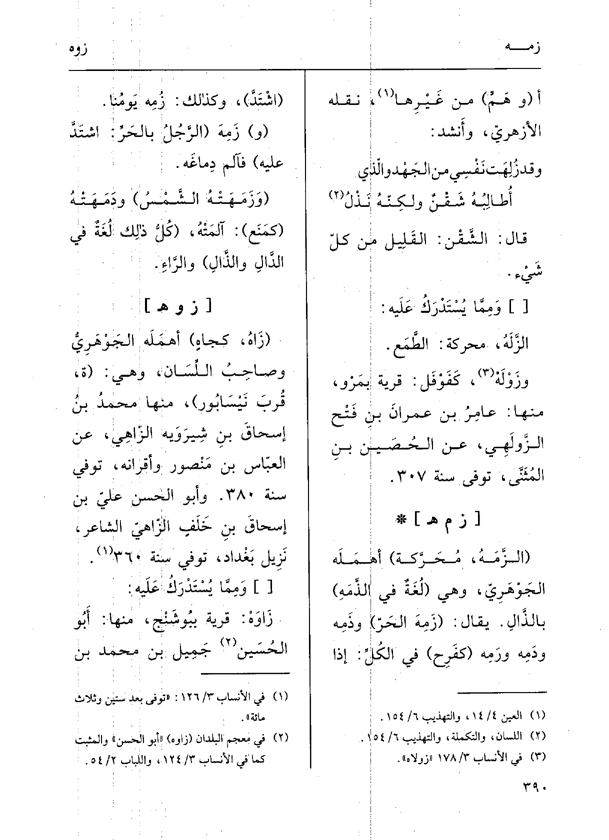 : ( {زاهُ، كَجاهٍ) :) أَهْمَلَهُ الجوْهرِيُّ وصاحِبُ اللِّسانِ.