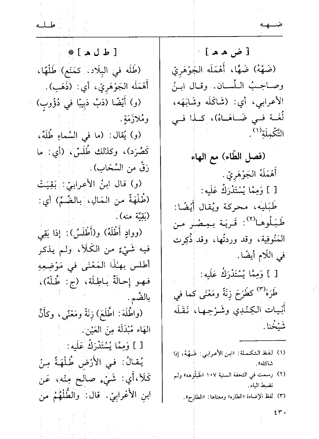 : (طَلَهَ فِي البِلادِ، كمَنَعَ) ، طلهاً: أَهْمَلَهُ الجوْهرِيُّ.