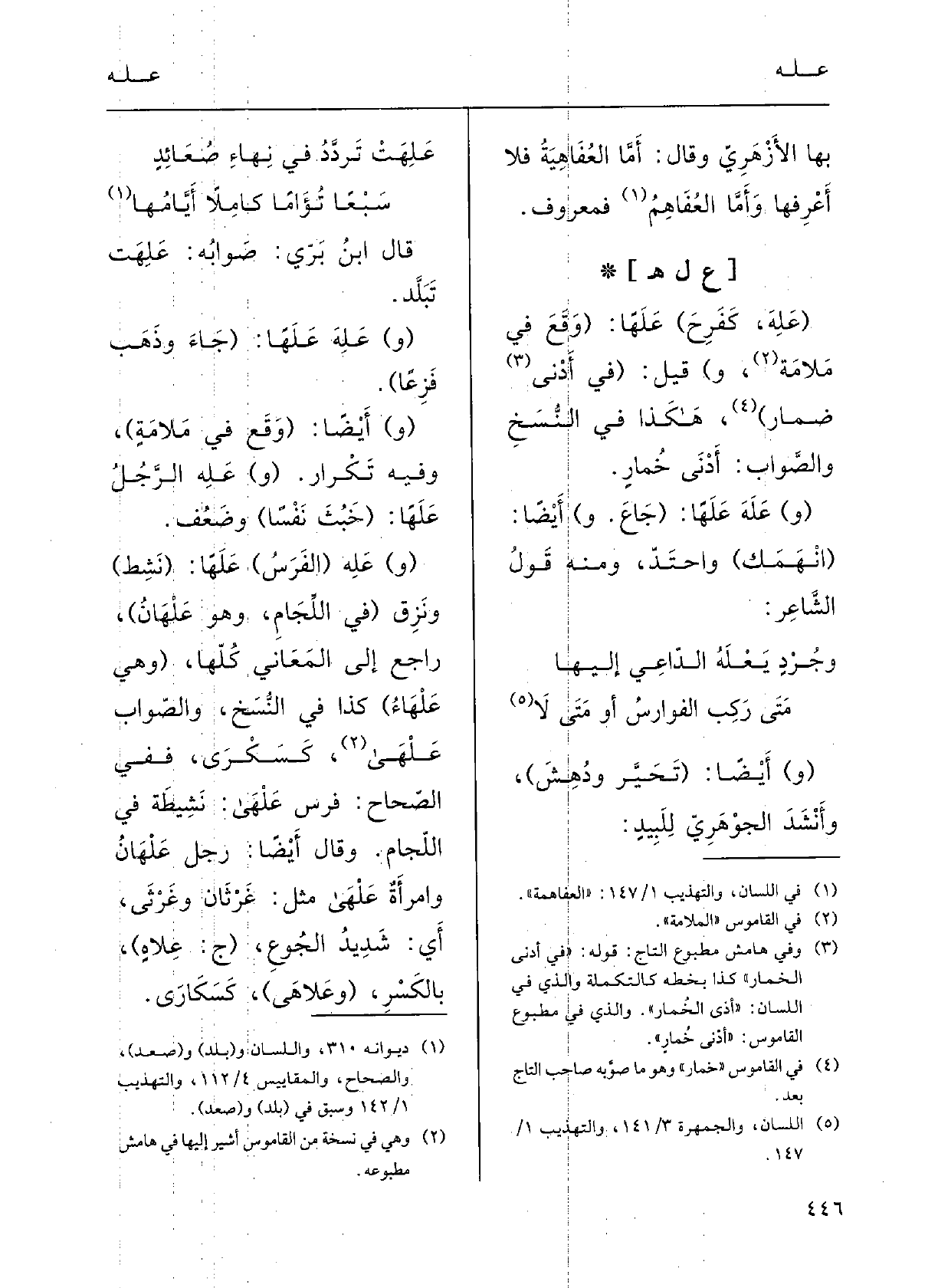 عَلِهَتْ تَرَدَّدُ فِي نِهَاءٍ صُعَائِدٍ سَبْعاً تُؤاماً كامِلاً أَيَّامُهَاقَالَ ابنُ بِرِّي: صوابُهُ: عَلِهَتْ تَبَلَّدُ.