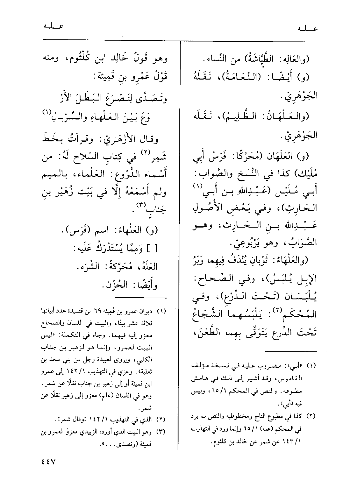 (والعَلْهَاءُ: اسمُ (فَرَسِ.