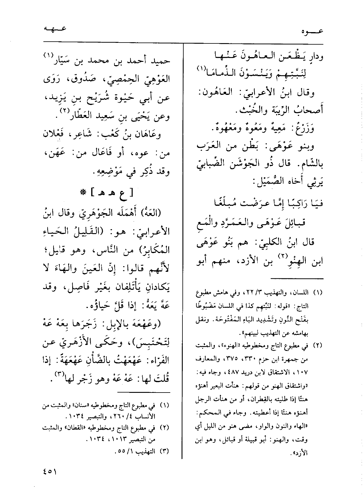 فَيَا رَاكِباً مَا عَرَضْتَ مبلعاً قبائل عَوْهَيّ والعمرّد وأَلْمَعِقَالَ ابنُ الكَلْبِيِّ: هُمْ بَنُو عَوْهَى بنِ الهنوء بن الأَزْدِ مِنْهُم أَبو حميدٍ أَحمدُ بنُ محمدِ بْنِ سِنَانٍ {العَوْهِيُّ الحمصيُّ صدُوقٌ رَوَى عَن أَبي حَيْوَةَ شُرَيْح بنِ يَزِيد وَعَن يَحْيَى بن سعيدٍ القَطَّان.