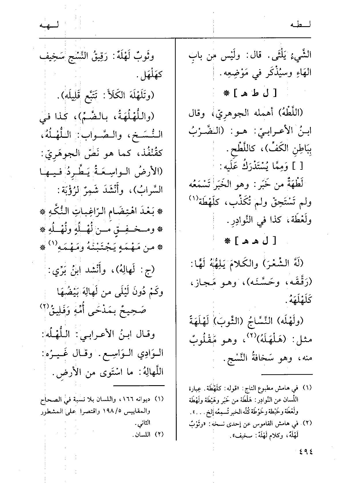 : ( {لَهَّ الشِّعْرَ) والكَلامَ} يَلهُّهُ {لَهًّا. (رَقَّقَهُ وحَسَّنَهُ) وَهُوَ مجازٌ} كلَهْلَهَهُ.