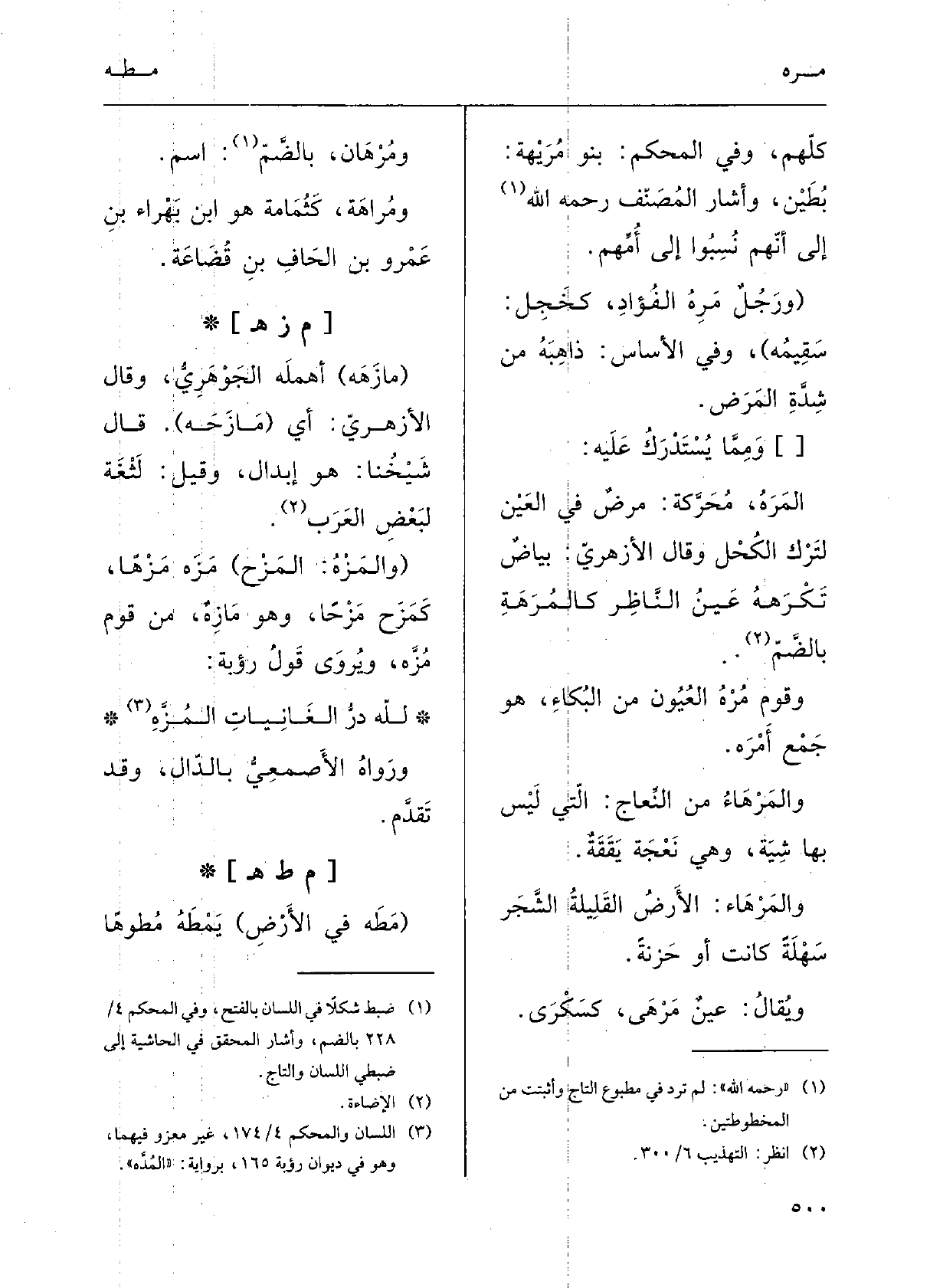 وقوْمٌ مُرْهُ العُيونِ من البُكاءِ، هُوَ جَمْعُ أَمْرَهٍ.