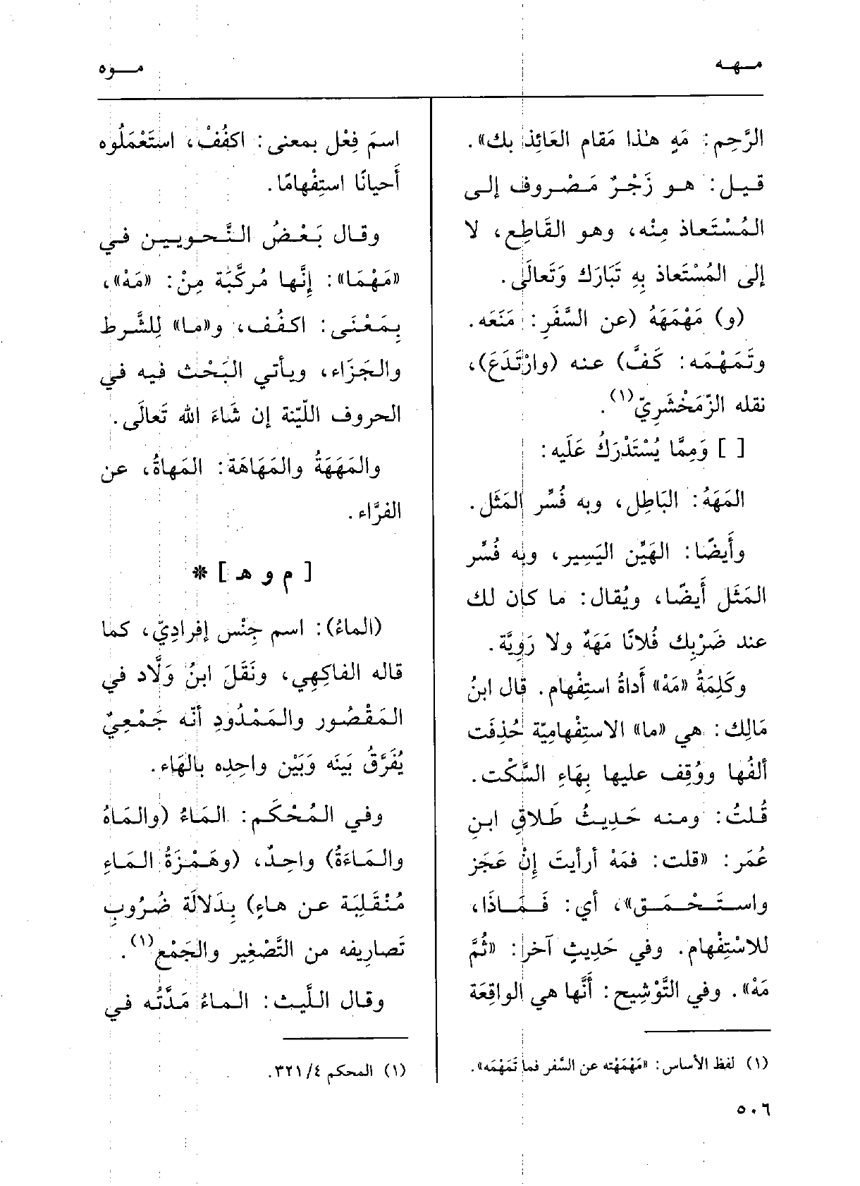 وقالَ بعضُ النّحويّين فِي مَهْمَا: إنَّها مُرَكَّبَة مِن مَهْ بمعْنَى اكْفُفْ، وَمَا للشَّرْط والجَزاءِ، ويأْتي البَحْثُ فِيهِ فِي الحُرُوفِ اللَّيِّنَةِ إنْ شاءَ اللَّهُ تَعَالَى.