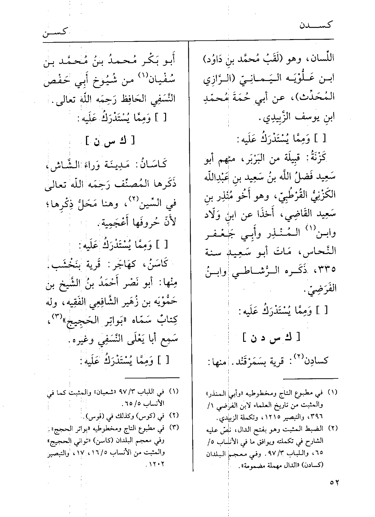 :) كاسانُ: مدينَةٌ وَرَاء الشَّاش، ذَكَرَها المصنِّفُ، رحِمَه اللهُ تَعَالَى فِي السِّيْن، وهُنا محلُّ ذِكْرِها لأنَّ حُرُوفَها أَعْجميَّةٌ.