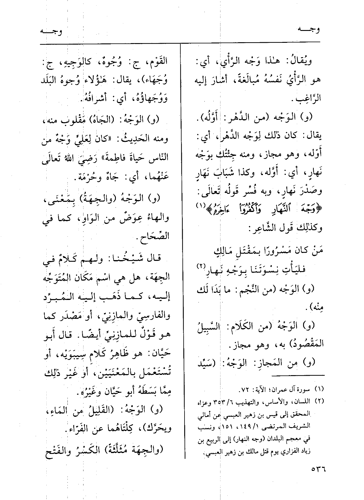 مَنْ كانَ مَسْروراً بمَقْتَلِ مالِكٍ فليأْتِ نِسْوَتَنا بوَجْهِ نهارِ (و) الوَجْهُ (من النَّجْمِ: مَا بَدَا لَك مِنْهُ.