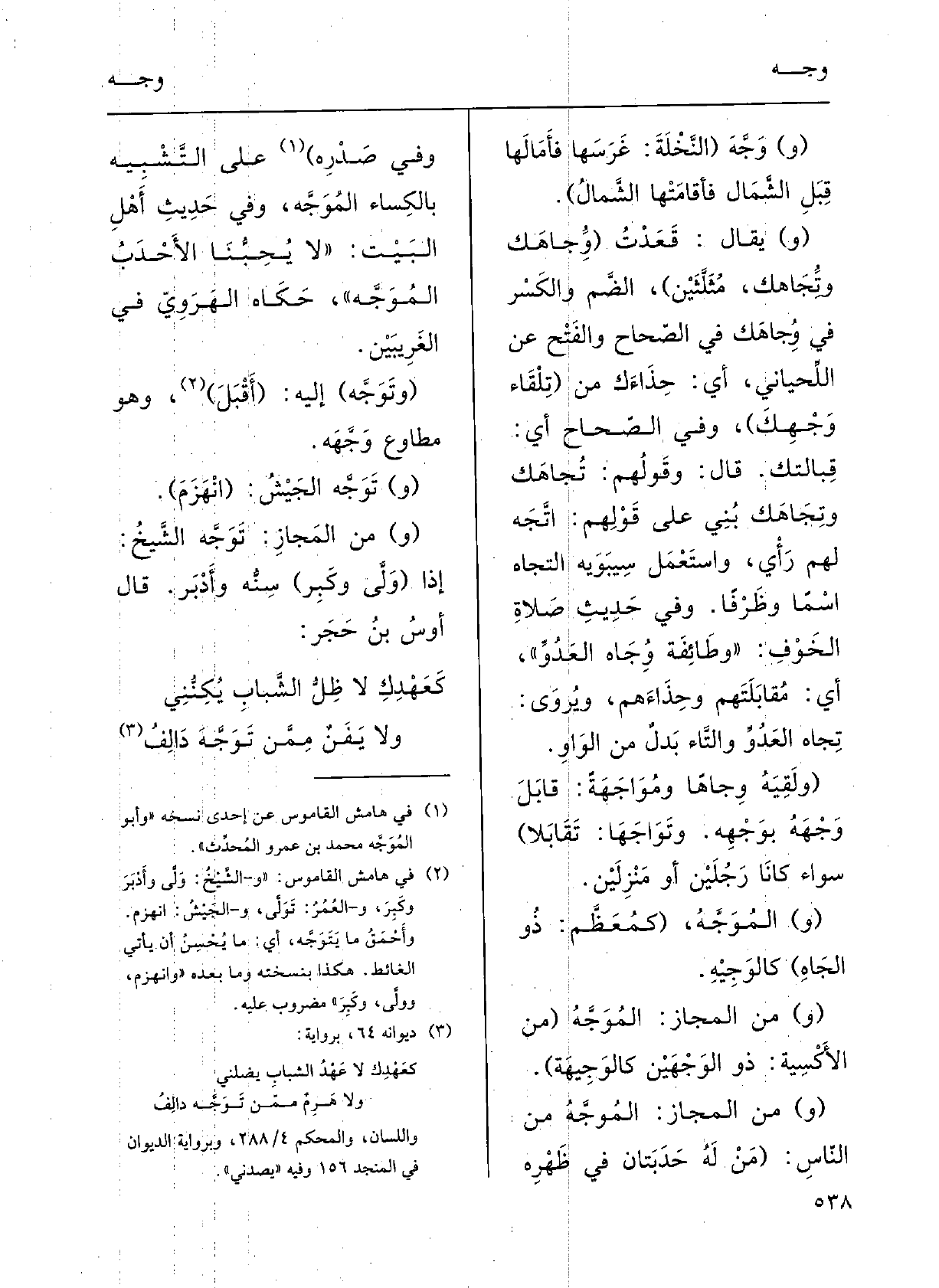 ( {وتَواجَهَا: تَقابَلا) سواءٌ كَانَا رَجُلَيْن أَو مَنْزلَيْن.