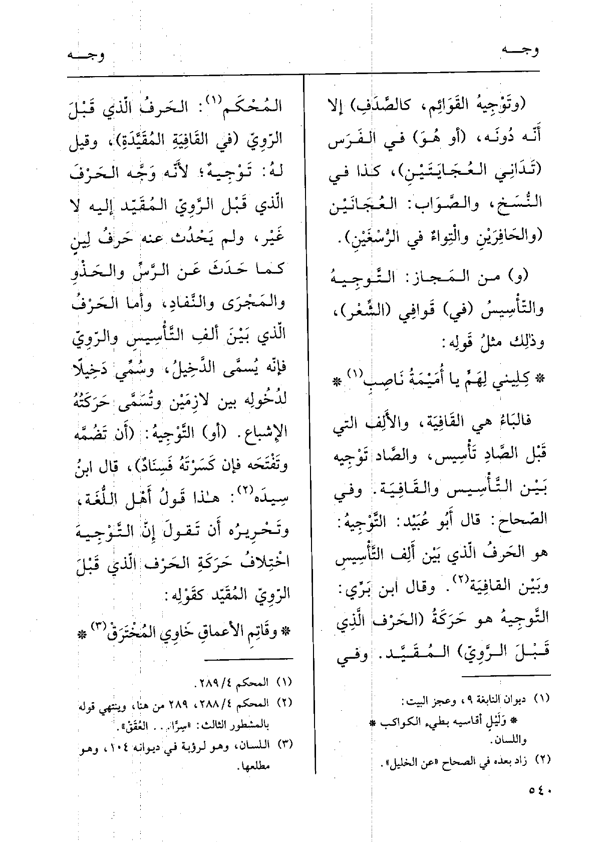 وَفِي الصِّحاحِ: قالَ أَبو عبيدٍ: {التَّوجِيهُ هُوَ الحَرْفُ الَّذِي بينَ أَلفِ التَّأْسِيسِ وبينَ القافِيَةِ.