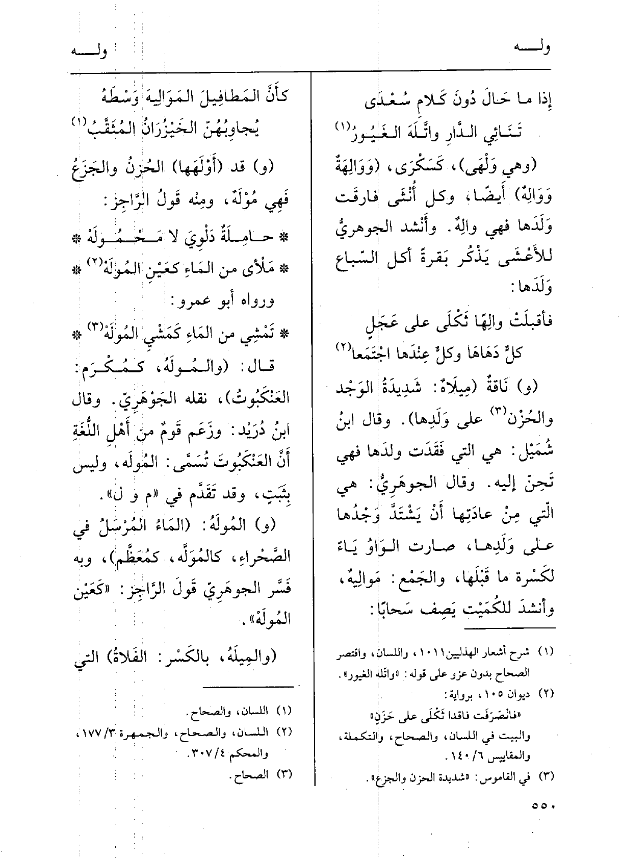 وكلُّ أُنْثى فارَقَتْ وَلَدَها فَهِيَ {والِهٌ؛ وأَنْشَدَ الجَوْهرِيُّ للأَعْشى يَذْكُرُ بقَرَةً أَكَلَ السِّباعُ وَلَدَها: