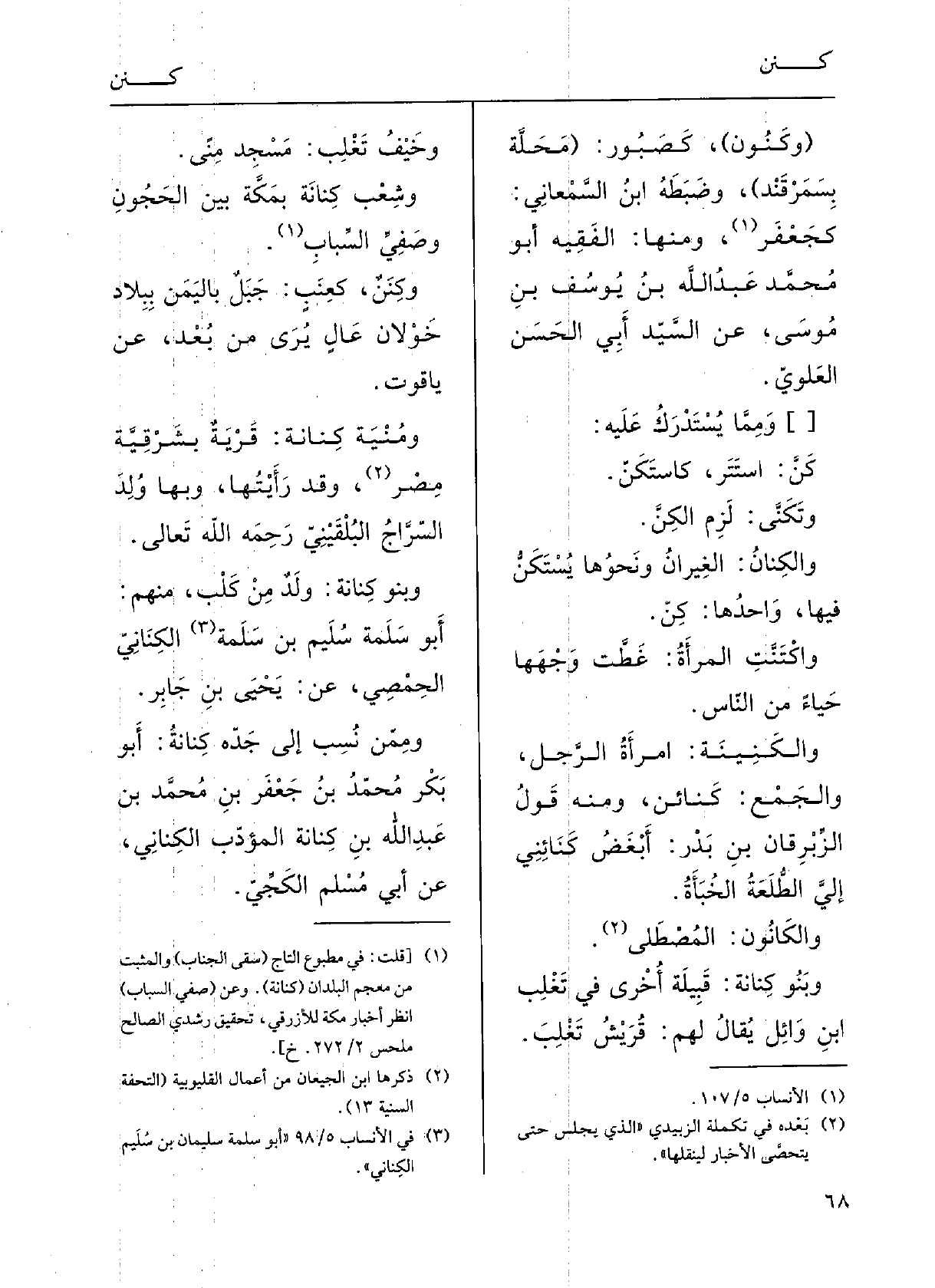 وبنُو كِنانَةَ وَلَده من كَلْبٍ، مِنْهُم: أَبو سَلَمَةَ سليمُ بنِ سَلَمَةَ} الكِنانيُّ الحمصيُّ عَن يَحْيَى بنِ جابِرٍ.