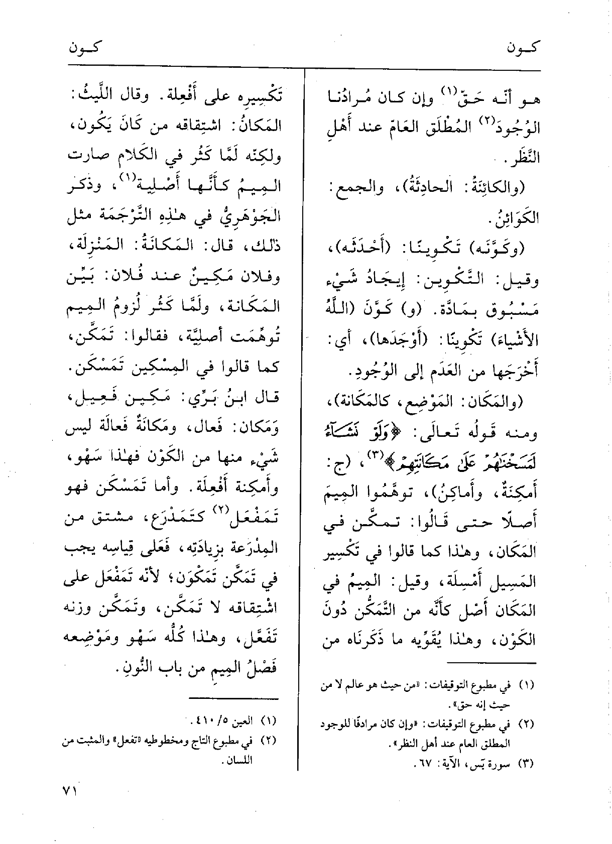 ( {وكَوَّنَهُ} تَكْويناً: (أَحْدَثَهُ؛ وقيلَ: {التّكْوِينُ إيجادُ شيءٍ مَسْبُوقٍ بمادَّةٍ.