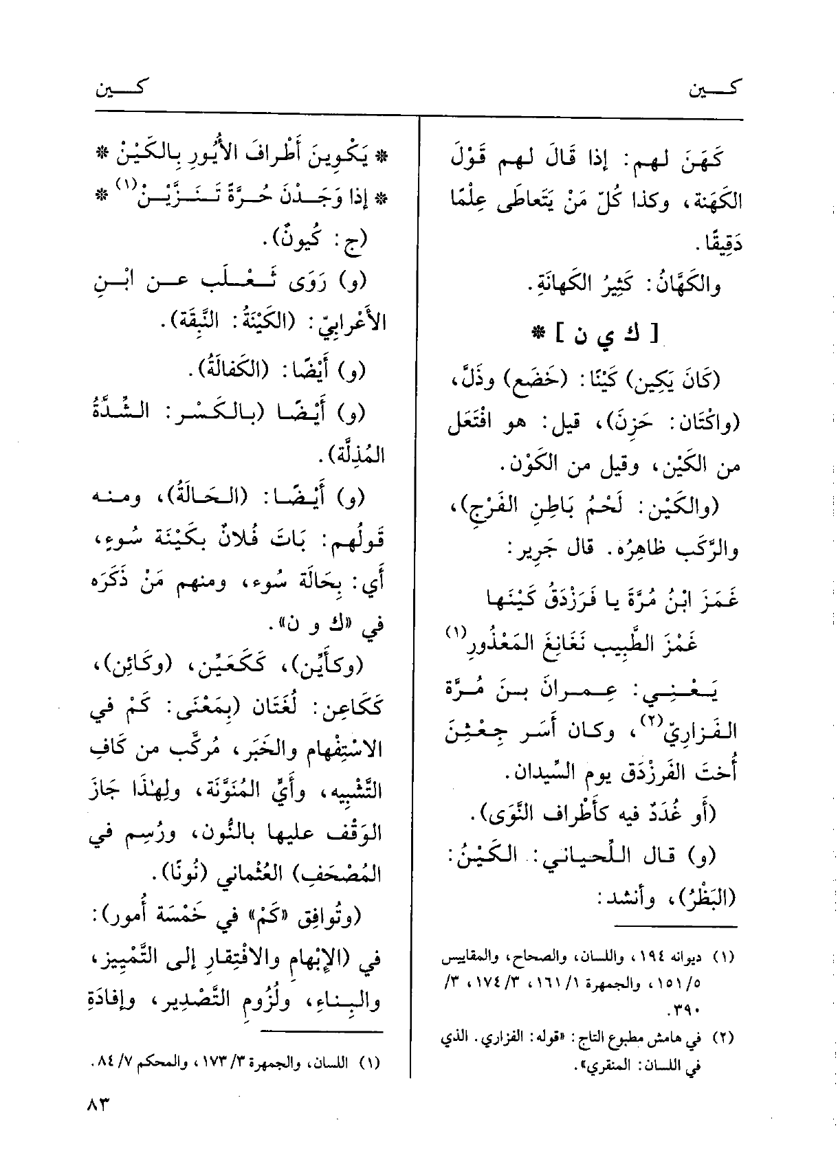 يَكْوينَ أَطرافَ الأُيورِ} بالكَيْن ِإذا وَجَدْنَ حَرَّةً تَنَزَّيْن (ج كُيُونٌ.