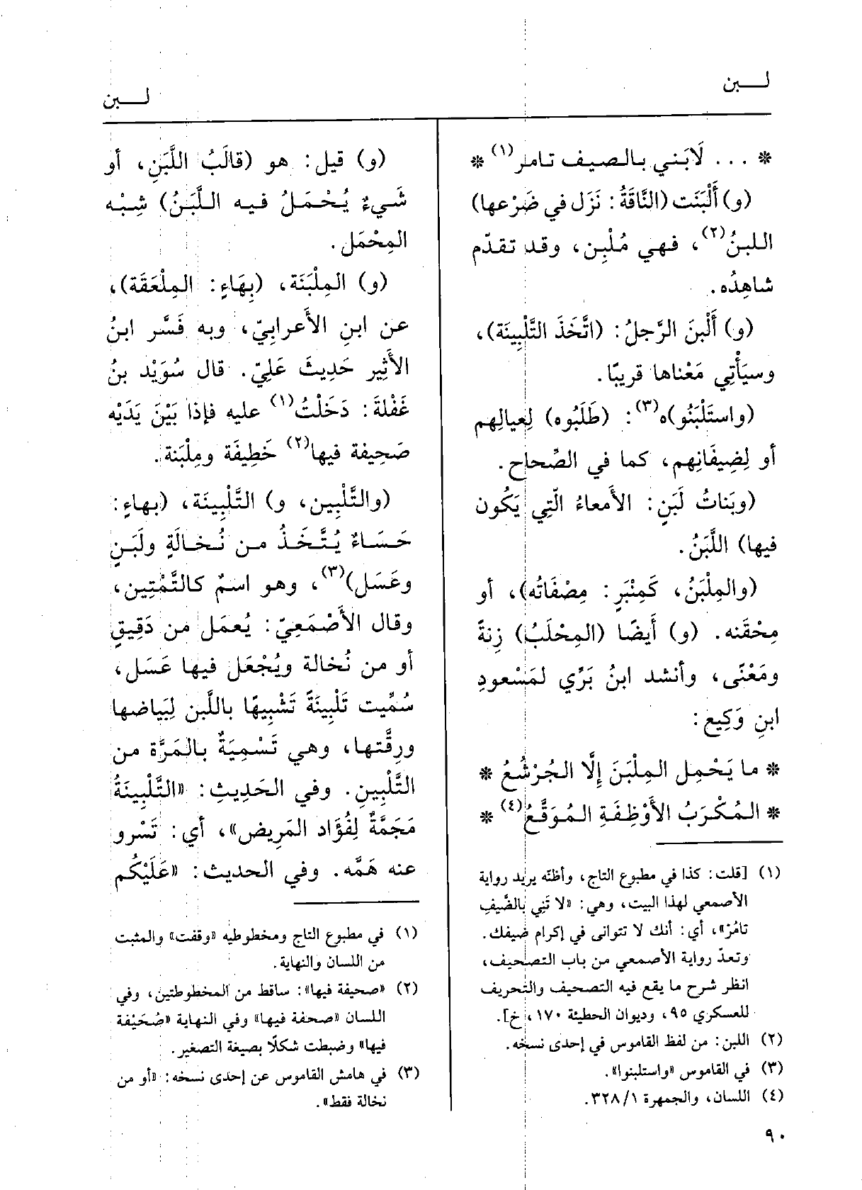 (و) المِلْبَنَةُ، (بهاءٍ: المِلْعَقَةُ) ؛) عَن ابنِ الأَعْرابيِّ، وَبِه فَسَّرَ ابنُ الأثيرِ حدِيثَ عليَ، قالَ سُوَيْد بنُ غَفَلَةَ: وَقَفْتُ عَلَيْهِ فَإِذا بَيْنَ يَدَيْه صحِيفَةٌ فِيهَا خَطِيفَة ومِلْبَنَة.