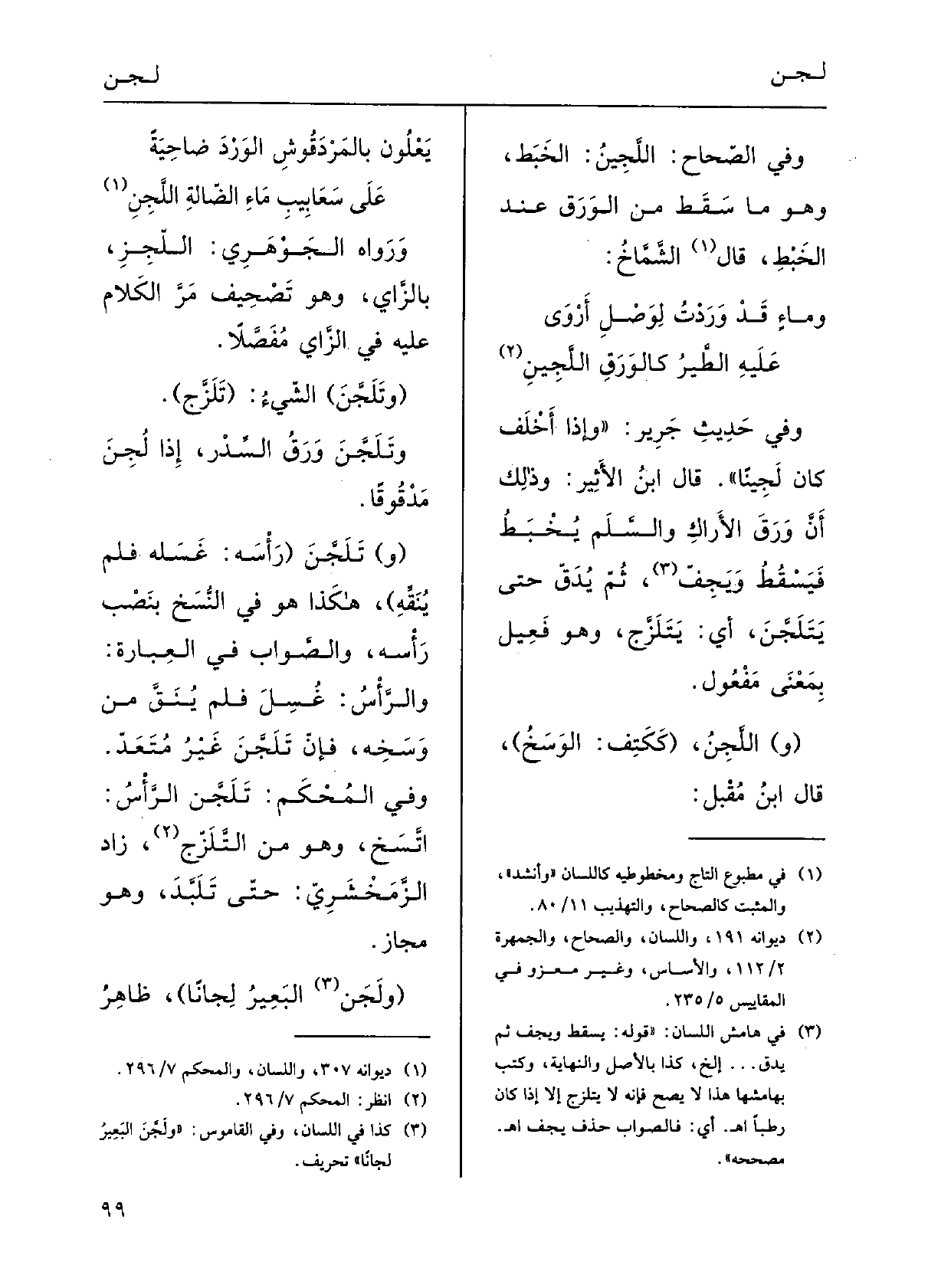 (ولَجَّنَ البَعِيرُ لِجاناً) ، ظاهِرُ