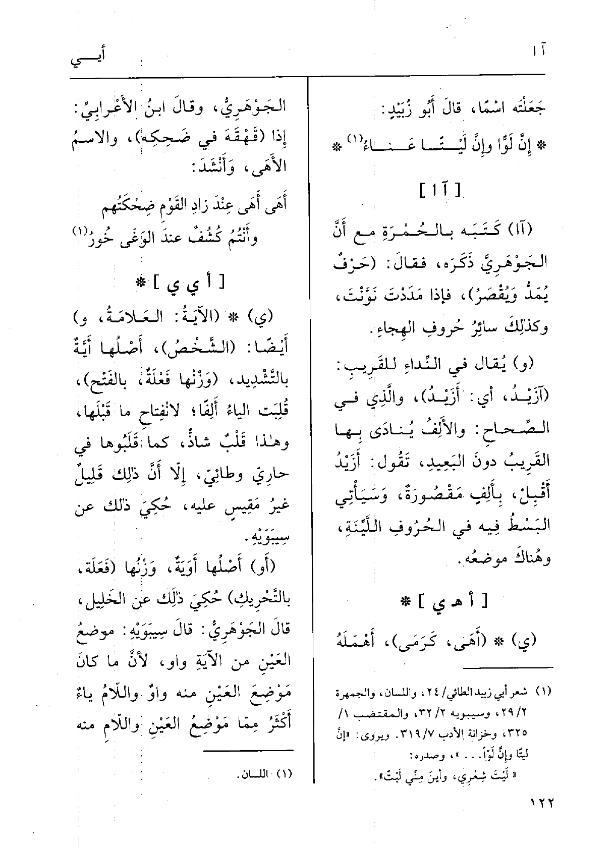 قالَ الجَوْهرِيُّ: قالَ سِيْبَوَيْه: مَوْضعُ العَيْن مِن الآيَةِ واوٌ، لأنَّ مَا كانَ مَوْضِعَ العَيْنِ مِنْهُ واوٌ وَاللَّام يَاء أَكْثَرَ ممَّا مَوْضِع العَيْن وَاللَّام مِنْهُ