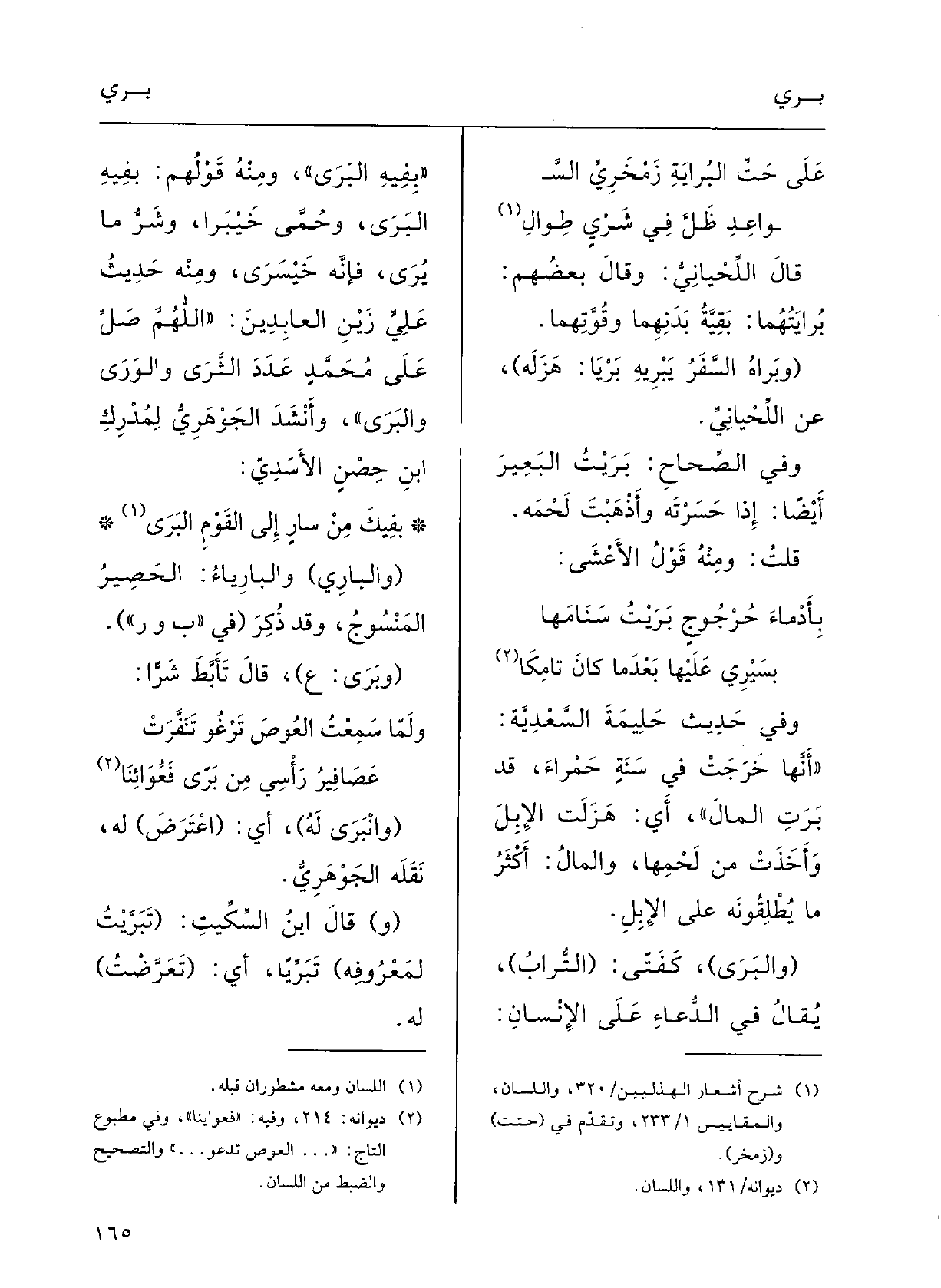 وَاعدِ ظَلّ فِي شَرْي طِوالِقالَ اللّحْيانيُّ: وقالَ بعضُهم {بُرَايَتُهما بقيَّةُ يَدَنِهما وقُوَّتهما.
