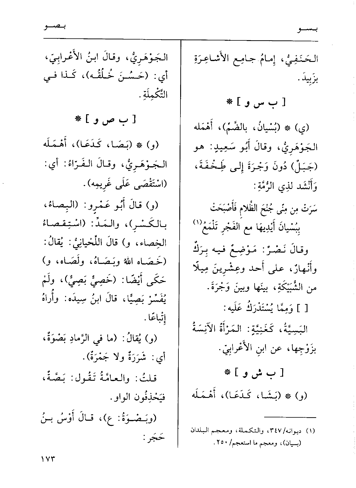 قُلْتُ: والعامَّةُ تقولُ: بَصْة فيَحْذِفونَ الواوَ.
