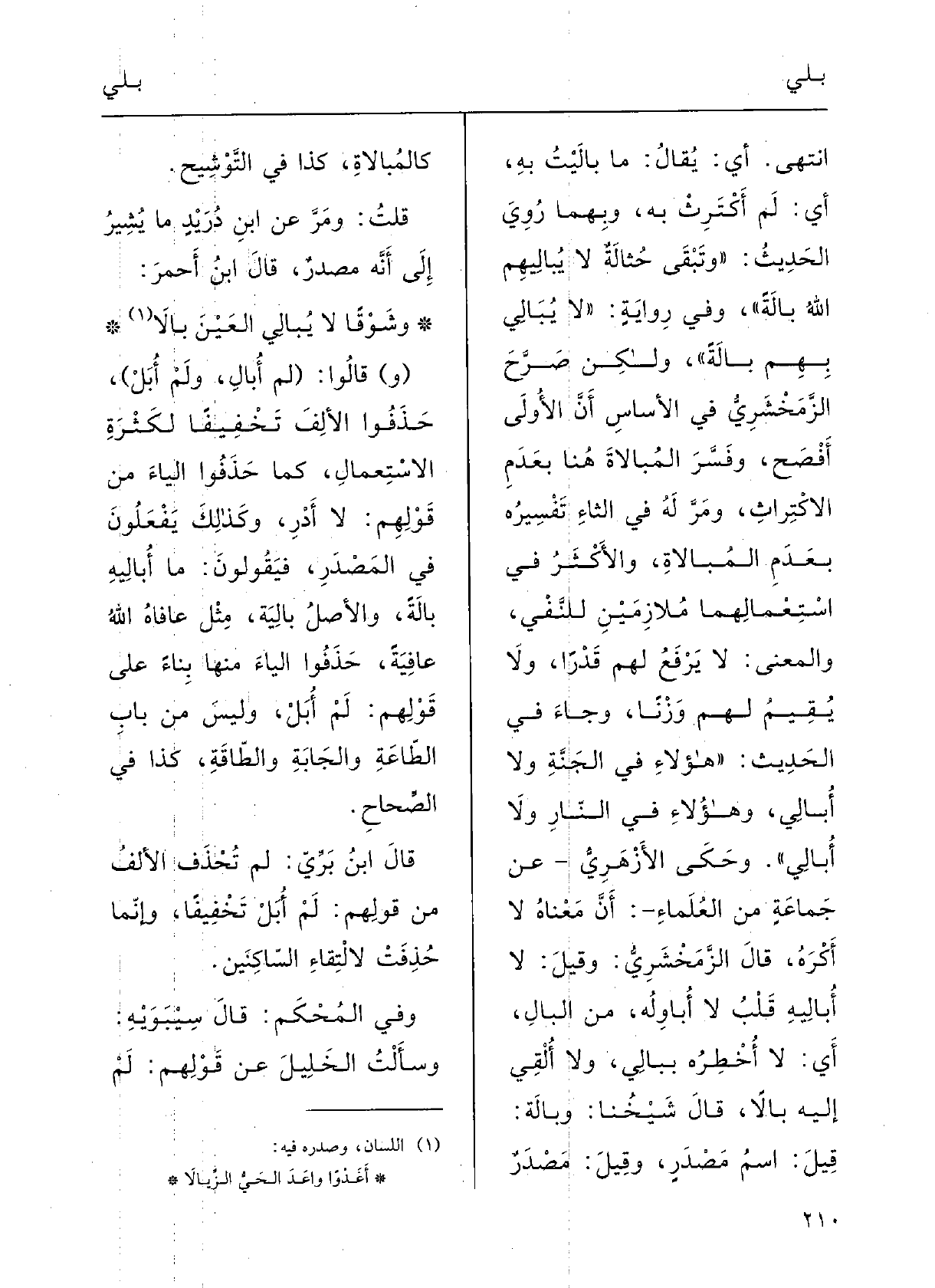 قالَ ابنُ بَرِّي: لم تُحْذَفِ الأَلفُ مِن قَوْلِهم: لم أُبَل تَخْفِيفاً، وإنَّما حُذِفَتْ لالْتِقاءِ الساكِنَيْنِ.