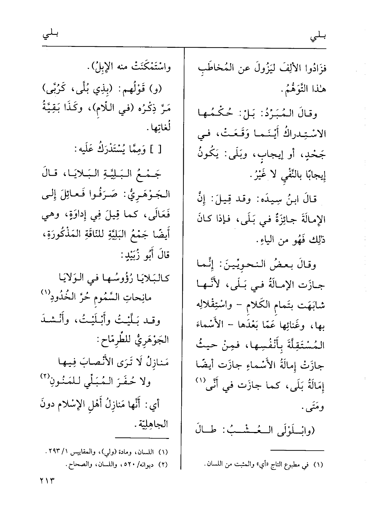 وقالَ بعضُ النَّحْوِيين: إنَّما جازَتِ الإمالَةُ فِي بَلَى لأنَّها شابَهَتْ بتَمامِ الكَلامِ واسْتِقلالِه بهَا وغِنائِها عمَّا بَعْدَها كالأَسْماءِ المُسْتَقِلّةِ بأَنْفُسِها، فَمن حَيْثُ جازَتْ إمالَةُ الأسْماءِ جازَتْ أَيْضاً إمالَةُ بَلَى، كَمَا جازَتْ فِي أَي وَمَتى.