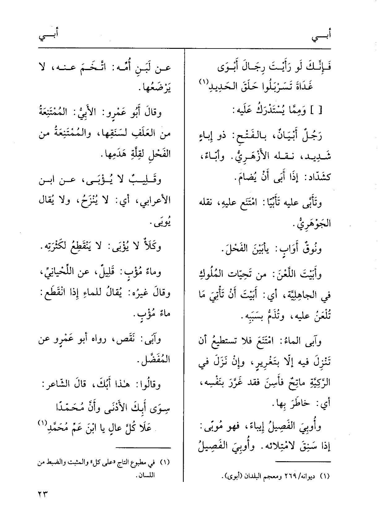 وآبَى: نَقَصَ، رَوَاهُ أَبو عَمْروٍ عَن المُفَضَّلٍ.