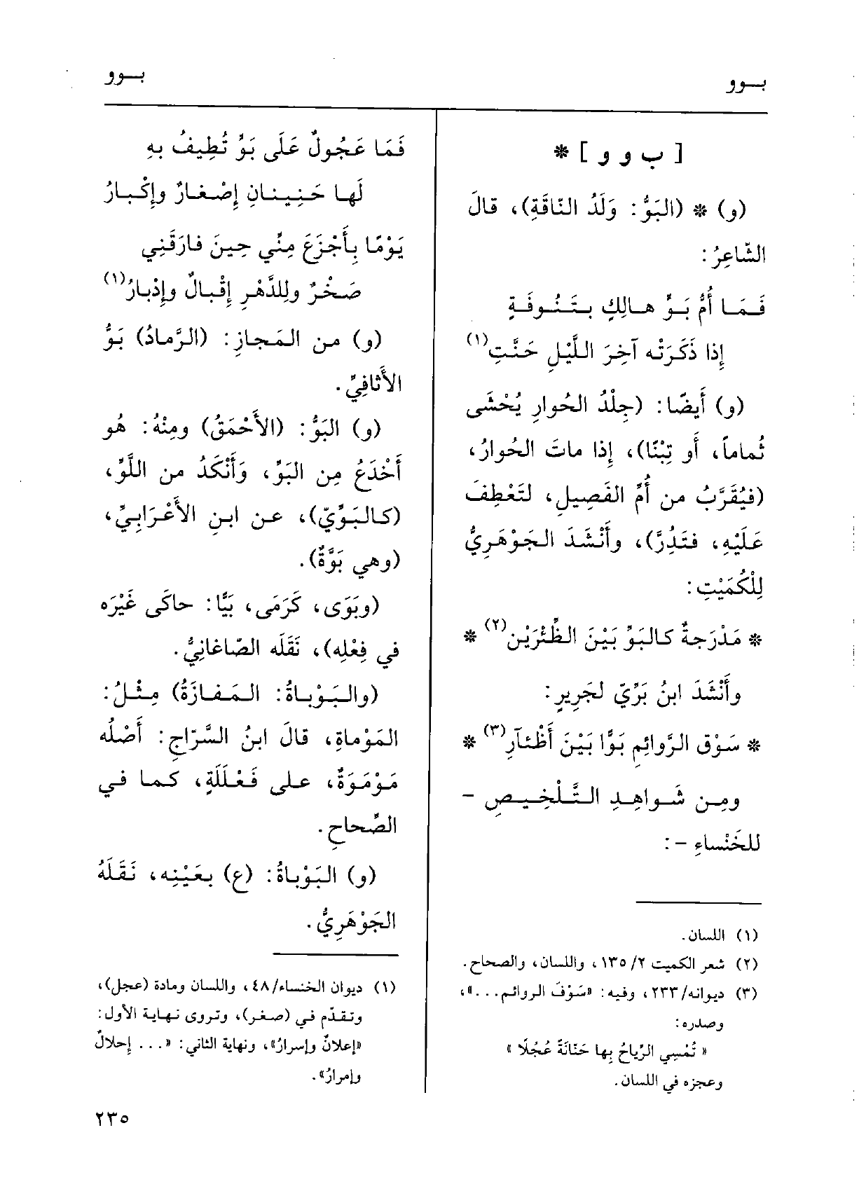 سَوْق الرّوائمِ} بَوّاً بينَ أَظئارِ ومِن شواهِدِ التَّلْخيصِ للخَنْساء: