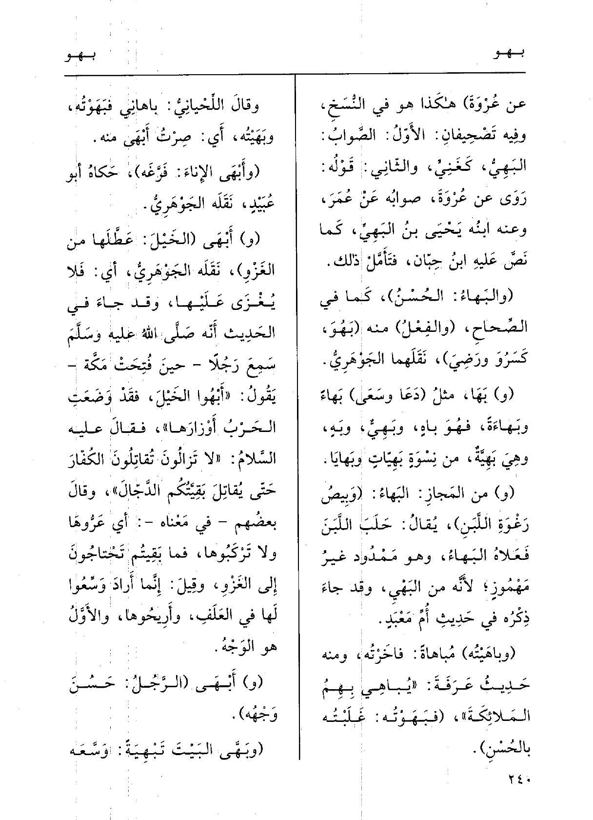 (} فَبَهَوْتُه: غَلَبْتُهُ بالحُسْنِ) .