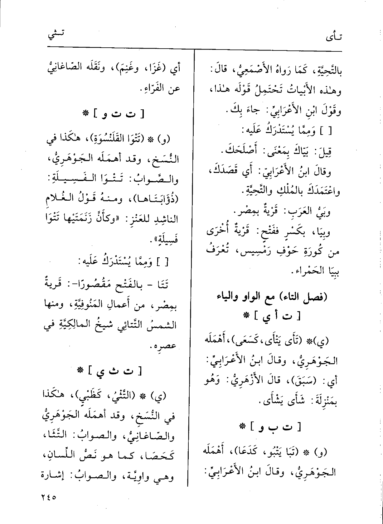 (فصل التَّاء) مَعَ الْوَاو وَالْيَاء)