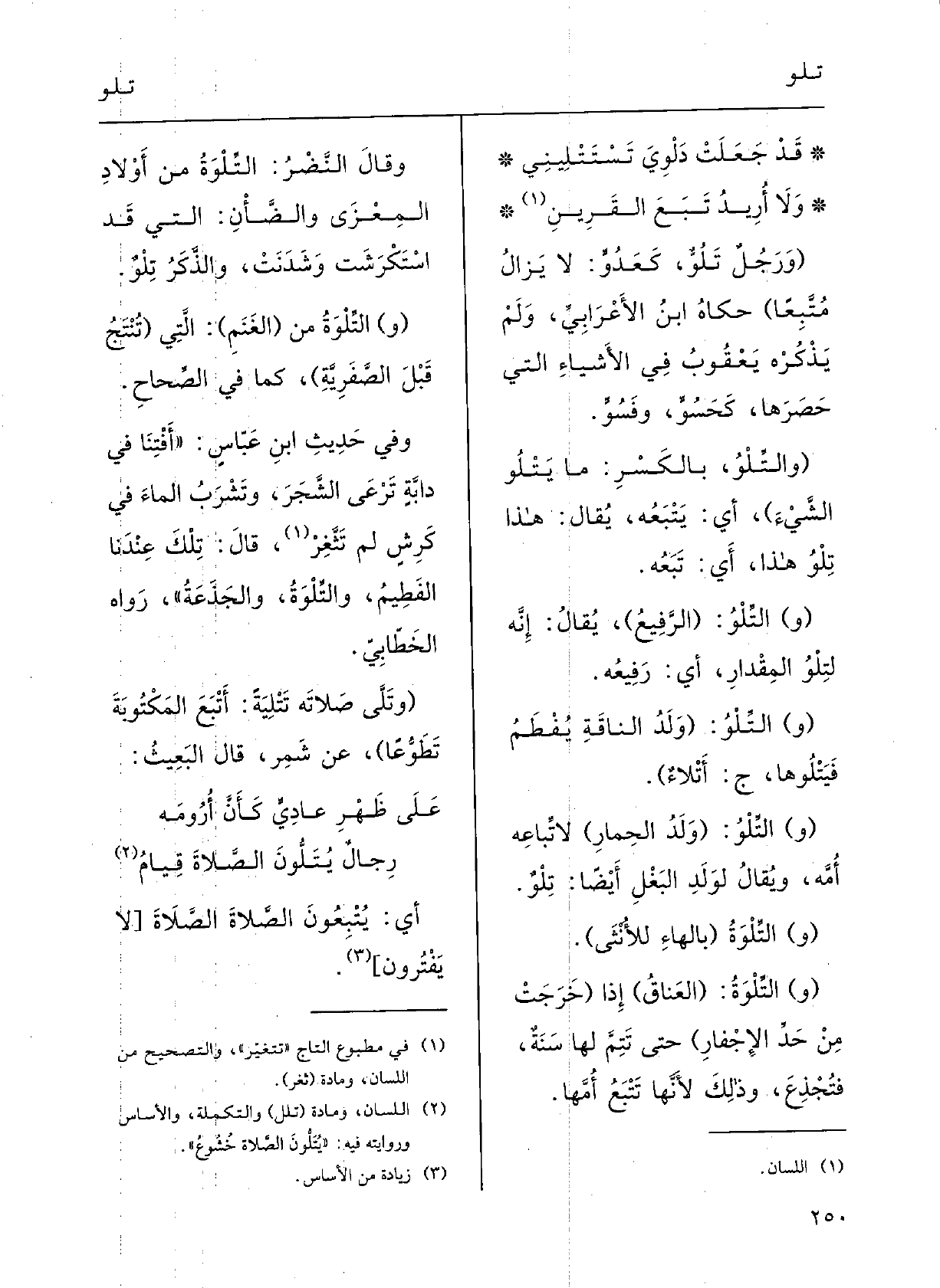 (والتَّلُوُ (ولدُ الْحمار) لاتِّباعِه أُمِّهِ وَيُقَال لوَلَدِ الْبَغْل أَيْضا {تلوٌ.