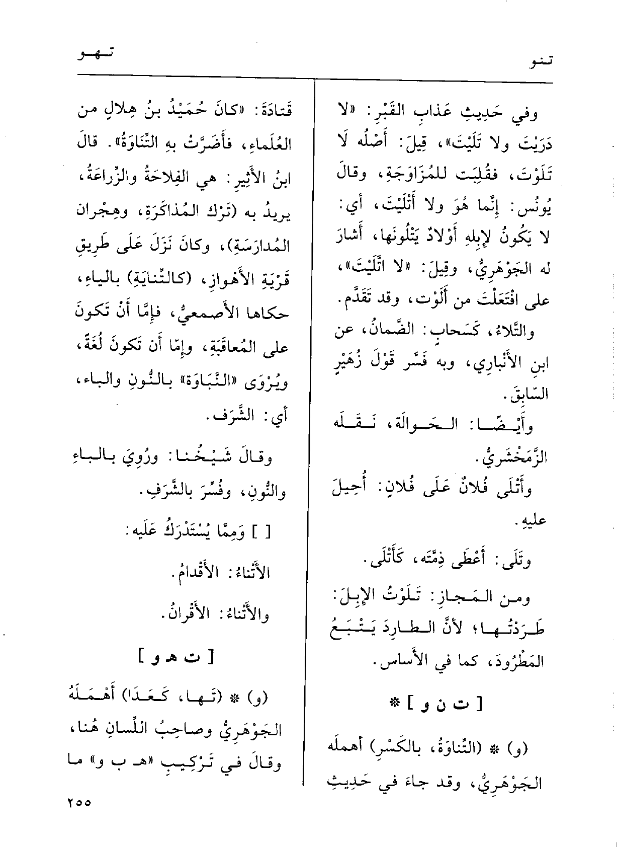 : (و {التَّناوَةُ بالكسْرِ) :) أهْمَلَه الجَوْهرِيُّ.